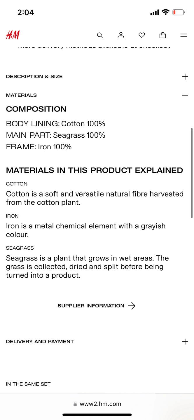 H&M Seagrass Laundry Basket (original price - 86$)