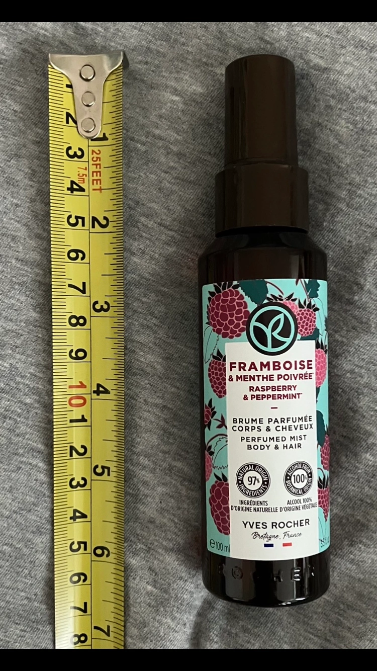 This is a 100ml bottle of Yves Rocher's Framboise & Menthe Poivrée Body And Hair Mist, which is a raspberry and peppermint scented fragrance, with Raspberry extract. I’ll be moving at some point, so I’m selling things ahead of time. Made in France 🇫🇷 brand.