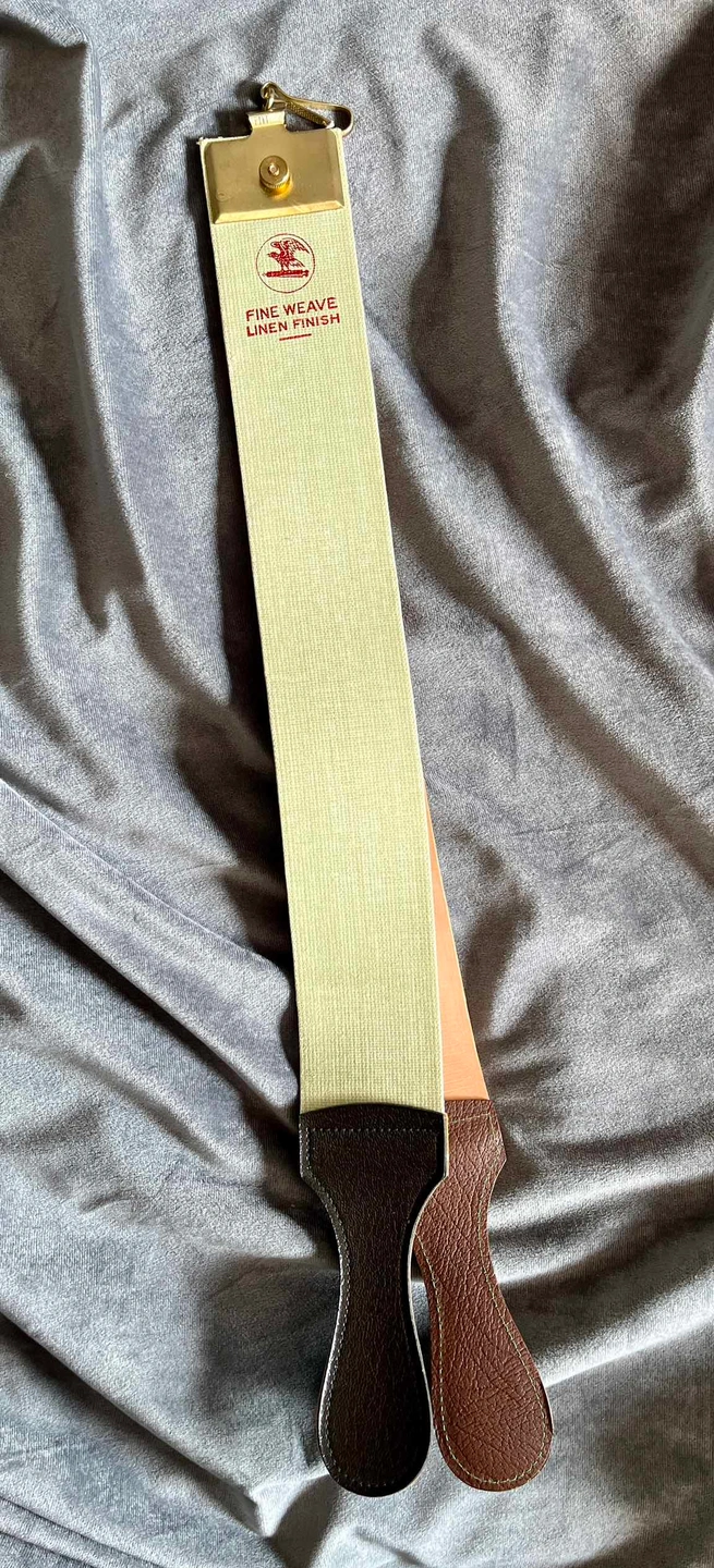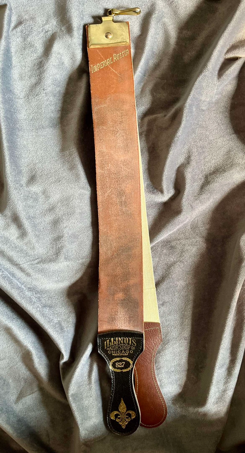 This is an Illinois Russian Razor Strop #827. Made in USA, one strop is made of leather and the other is linen. Approximately 23” long and 2.5” wide. I’m not sure if it’s ever been used or not…
