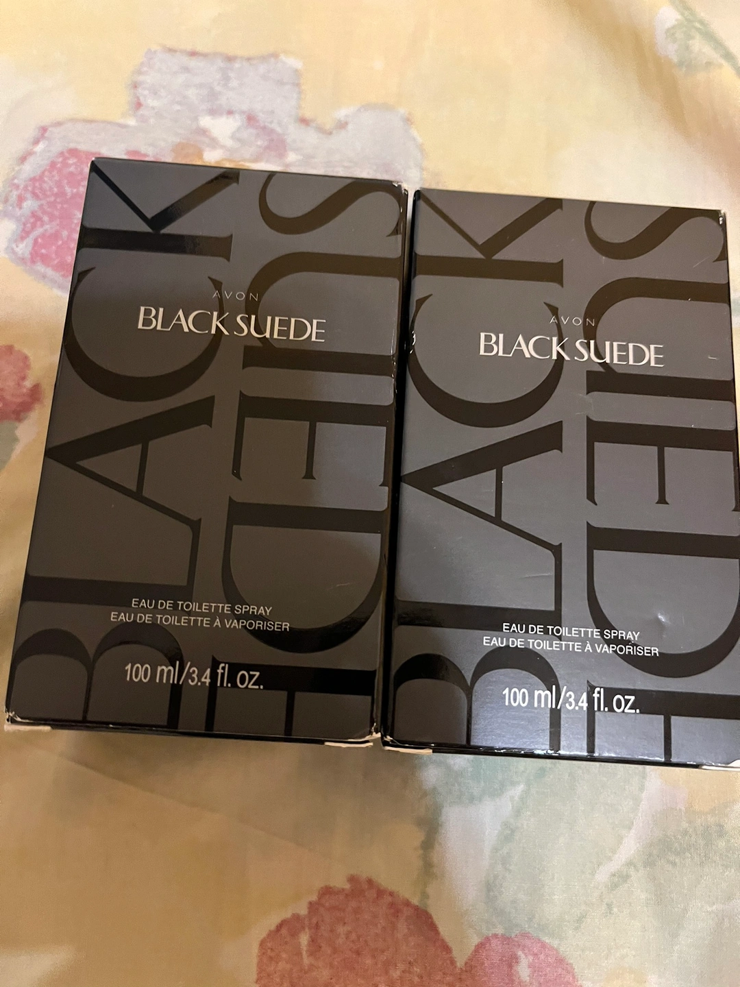 Two bottles of Avon Black Suede Eau de Toilette Spray, each 100ml.