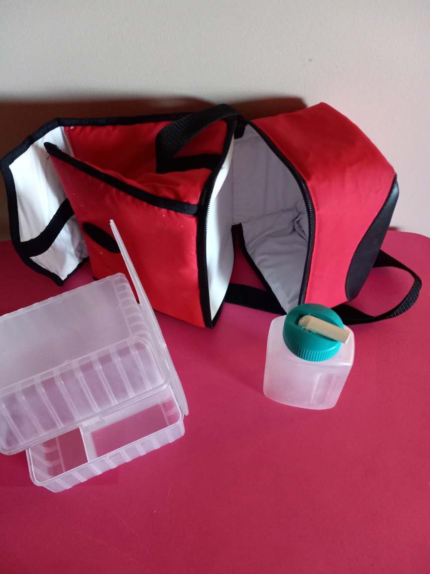 Brand new, never used Thermos lunch bag for any age. Extendable strap, includes water/juice bottle and sandwich and snack compartments.