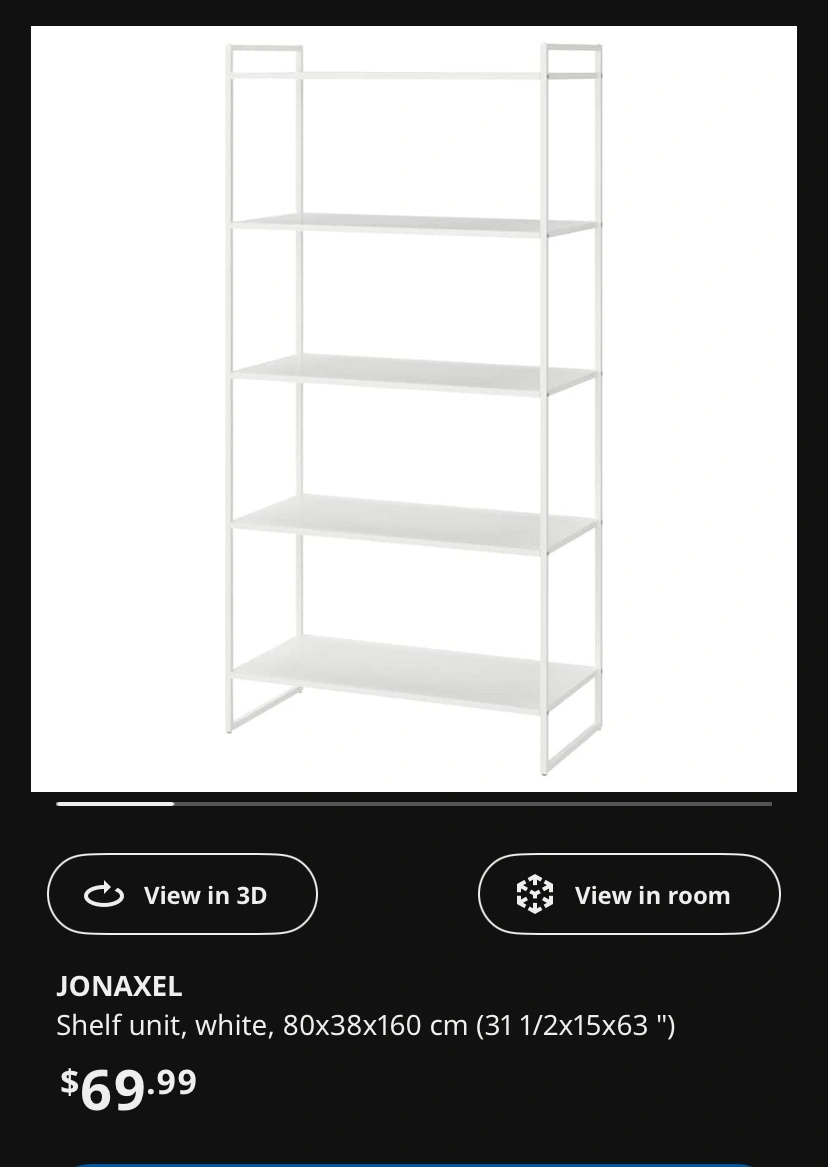 IKEA JONAXEL Shelf Unit - Metal - White - Like New - with 4 shelves.