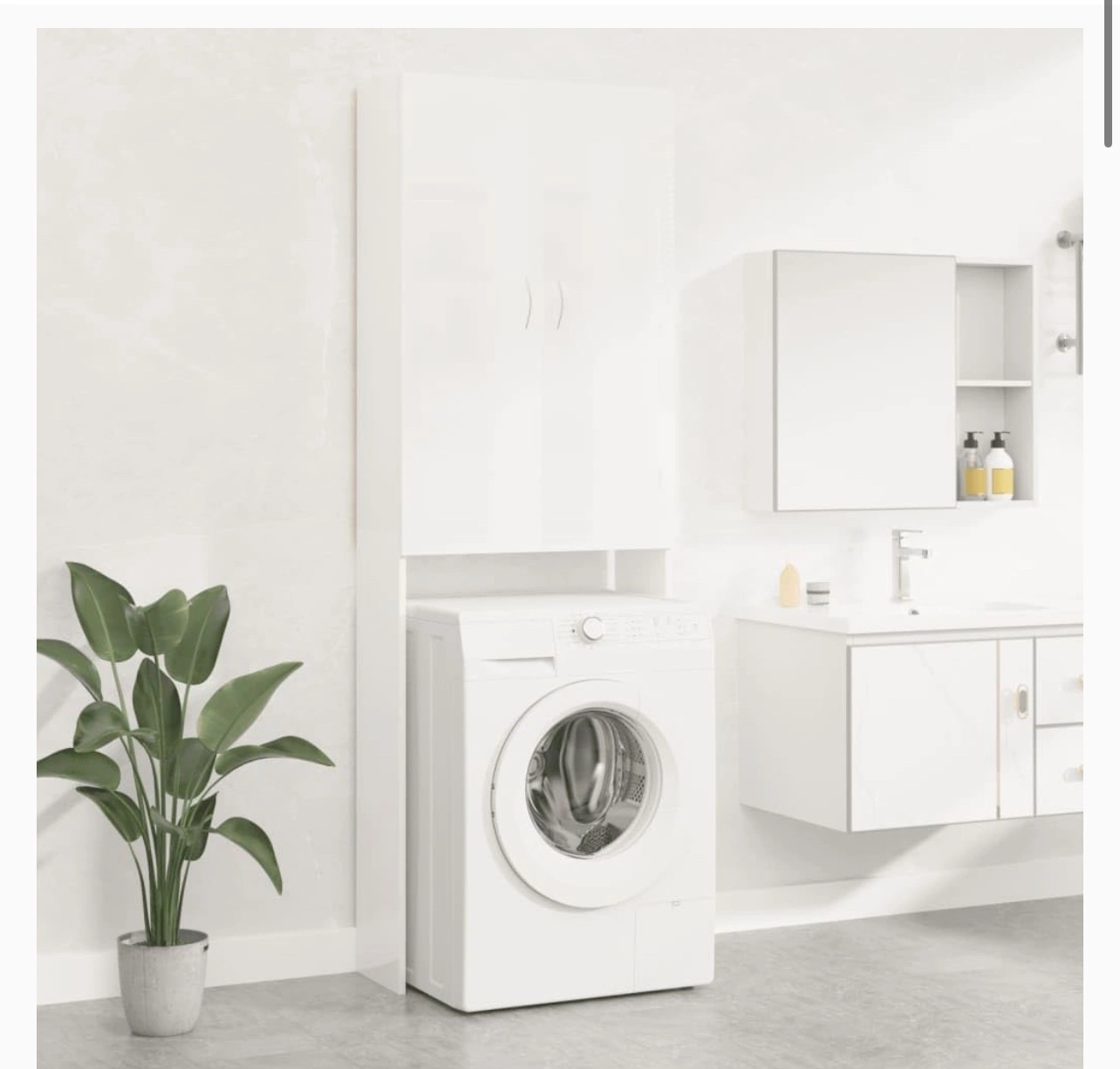 This is a white cabinet for washer and dryer. It is perfect for a laundry room or bathroom. It has two shelves and two doors. It is in good condition, just won’t fit in my new bathroom! Goes perfect with a shocker hamper underneath as an alternative to washer/dryer storage. Originally $185.
