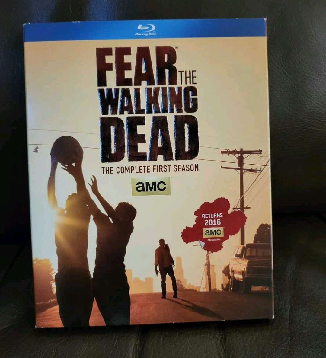 Blu-ray of the first season of the popular TV show Fear the Walking Dead. The complete first season in a Blu-ray case. Comes with an outer slipcover.