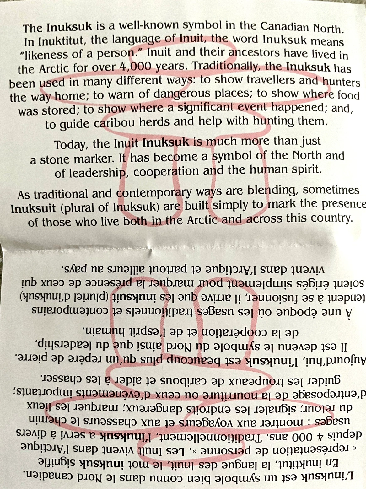All things iconically Canadian: a canoe, a Red River cart (from Manitoba) and an Inuksuk (Northern Canada).