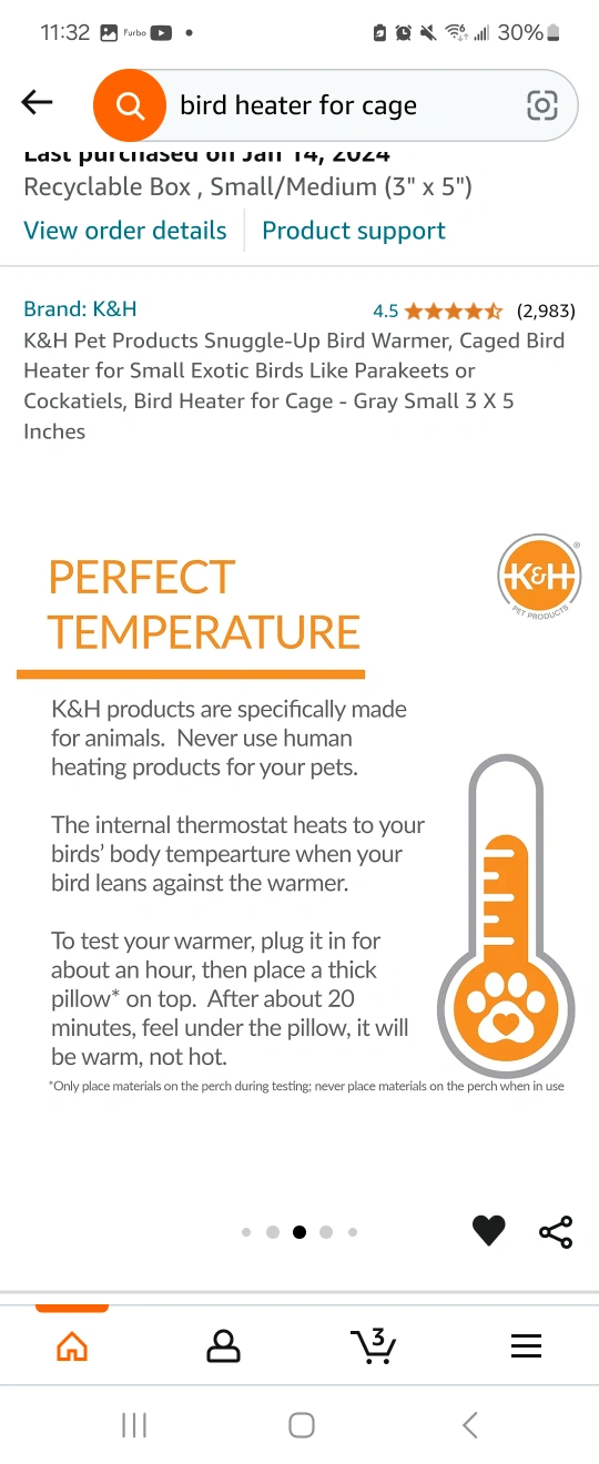 I also have a small heater for the cage, and a small net to catch seeds and feathers. Available for additional fee.