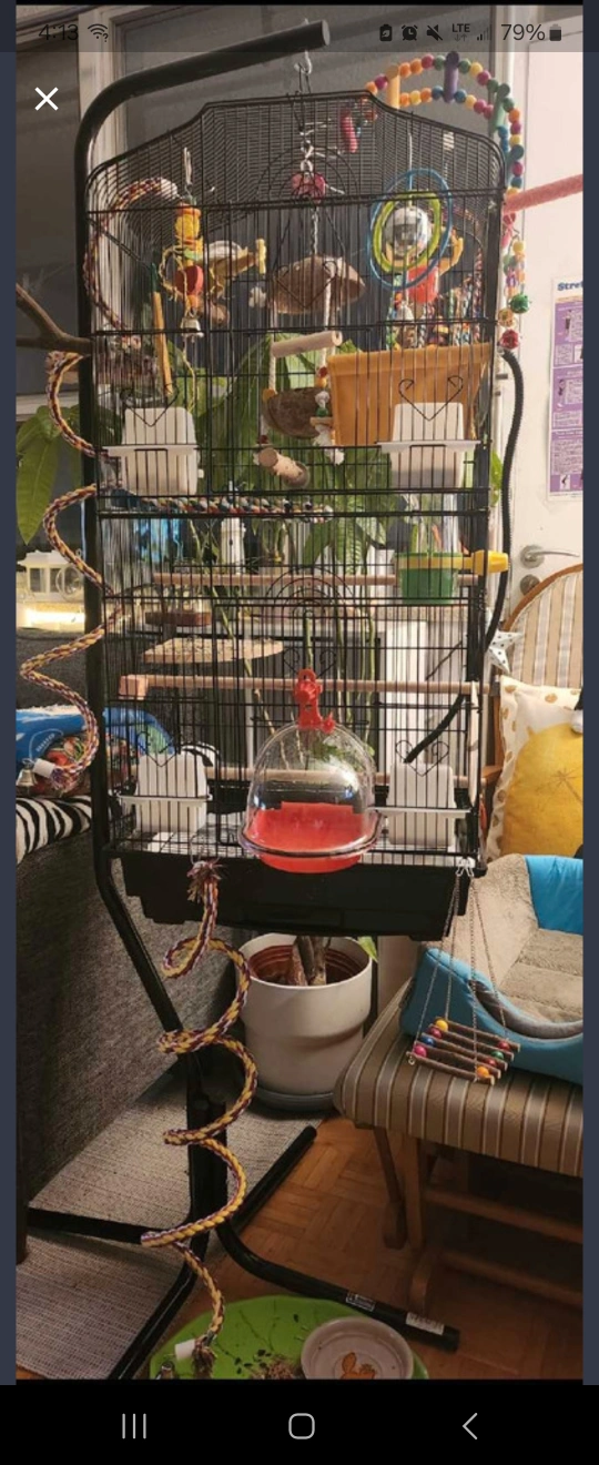 Looking to sell my hanging bird cage stand together with tall cage. (TWO ITEMS)