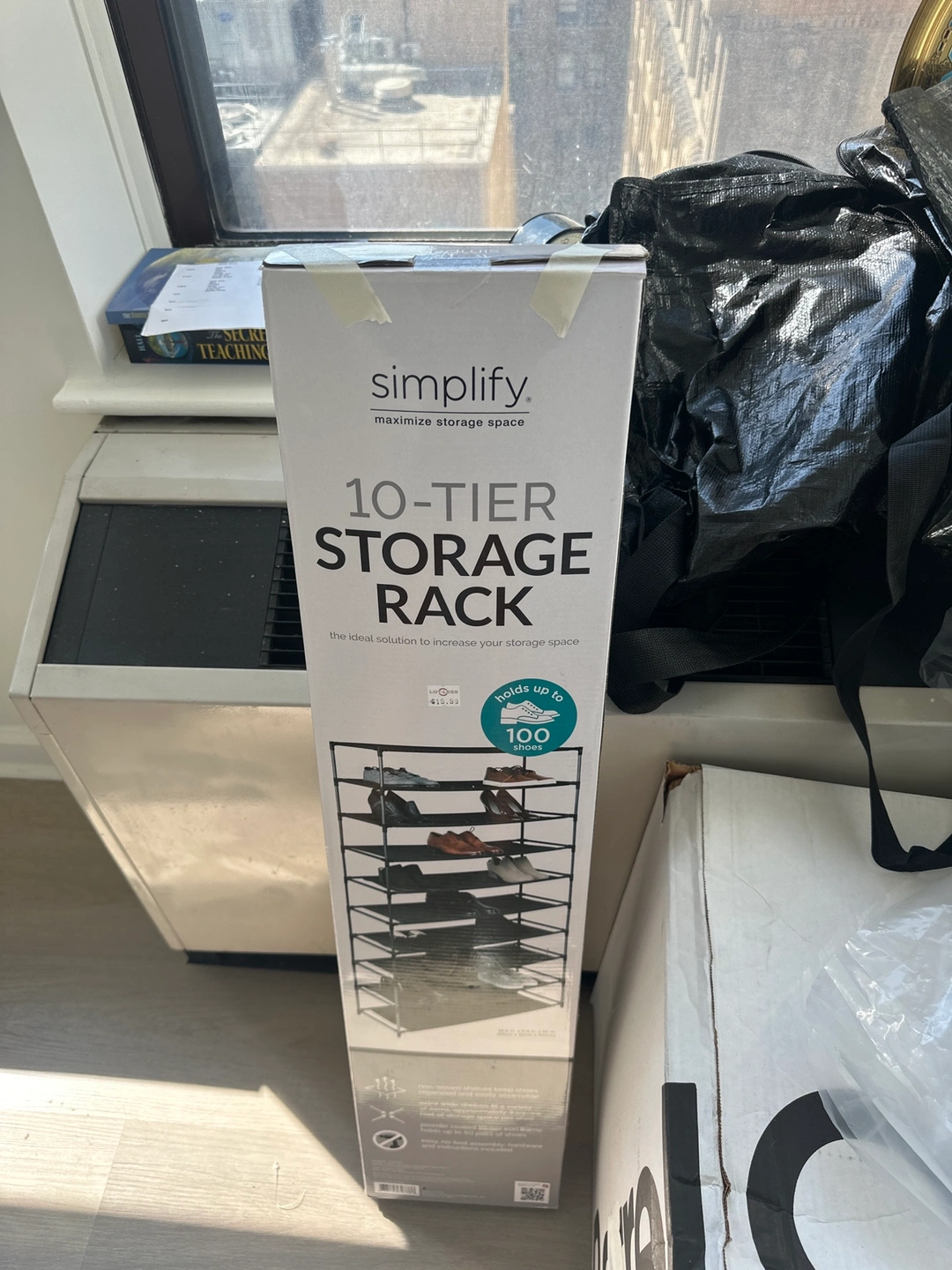 This is a 10-tier storage rack that holds up to 100 shoes. It is in new condition.