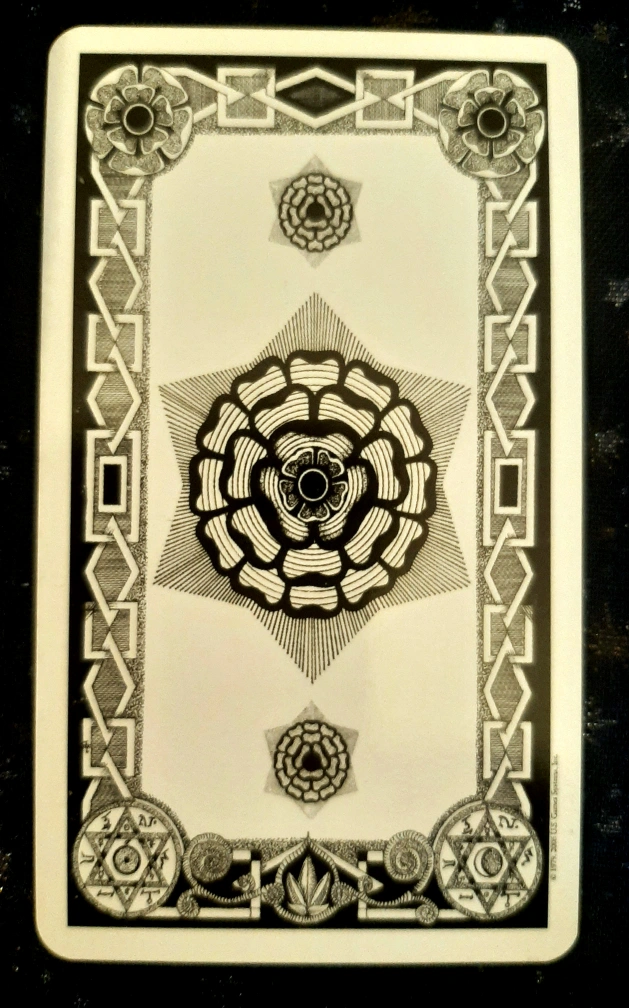 A full deck of 78 tarot cards 'Based Upon the Esoteric Workings of The Secret Order of the Golden Dawn,' by Godfrey Dowson. Stunning black and white artwork, loaded with symbolism. Deck is in as-new condition, unused, and Includes the original box and instruction booklet.