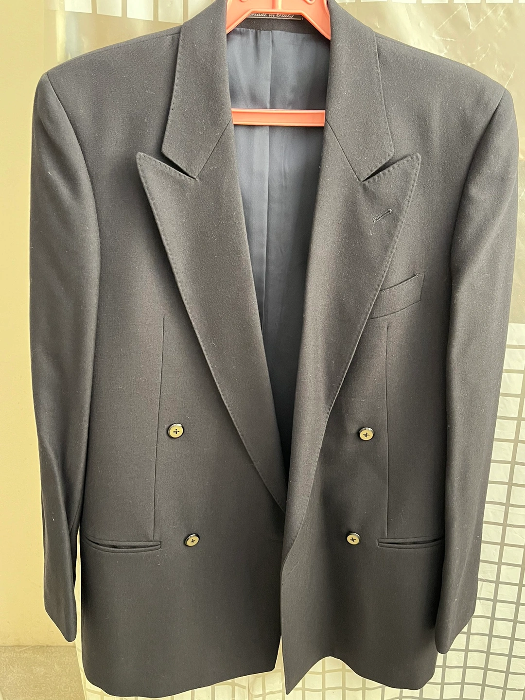 Next navy blue blazer with a double-breasted closure. Made of 100% wool with a viscose lining. Dry clean only. Features two flap pockets and one chest pocket. Made in Italy.