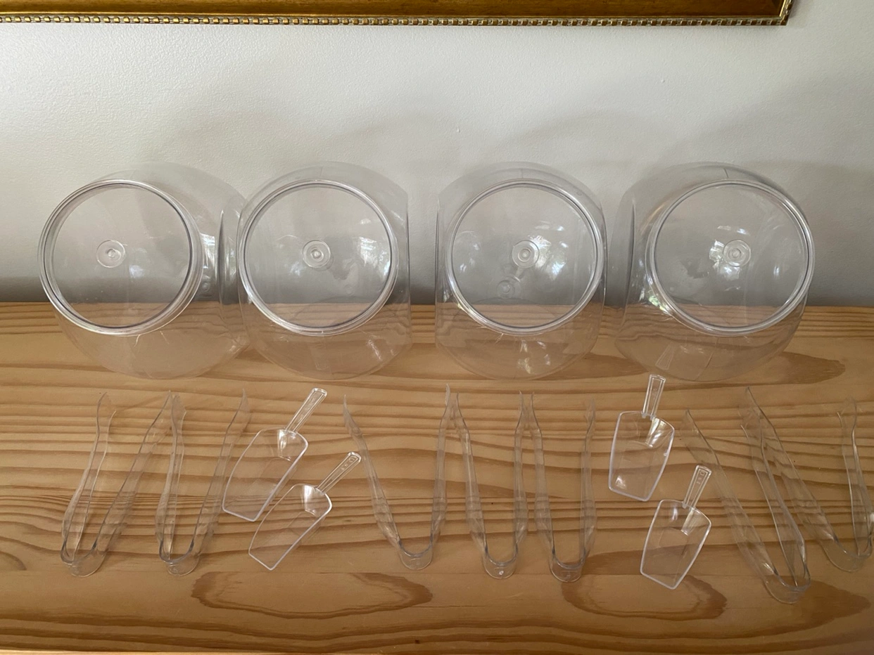 4 Clear Plastic Party Containers with Serving Utensils