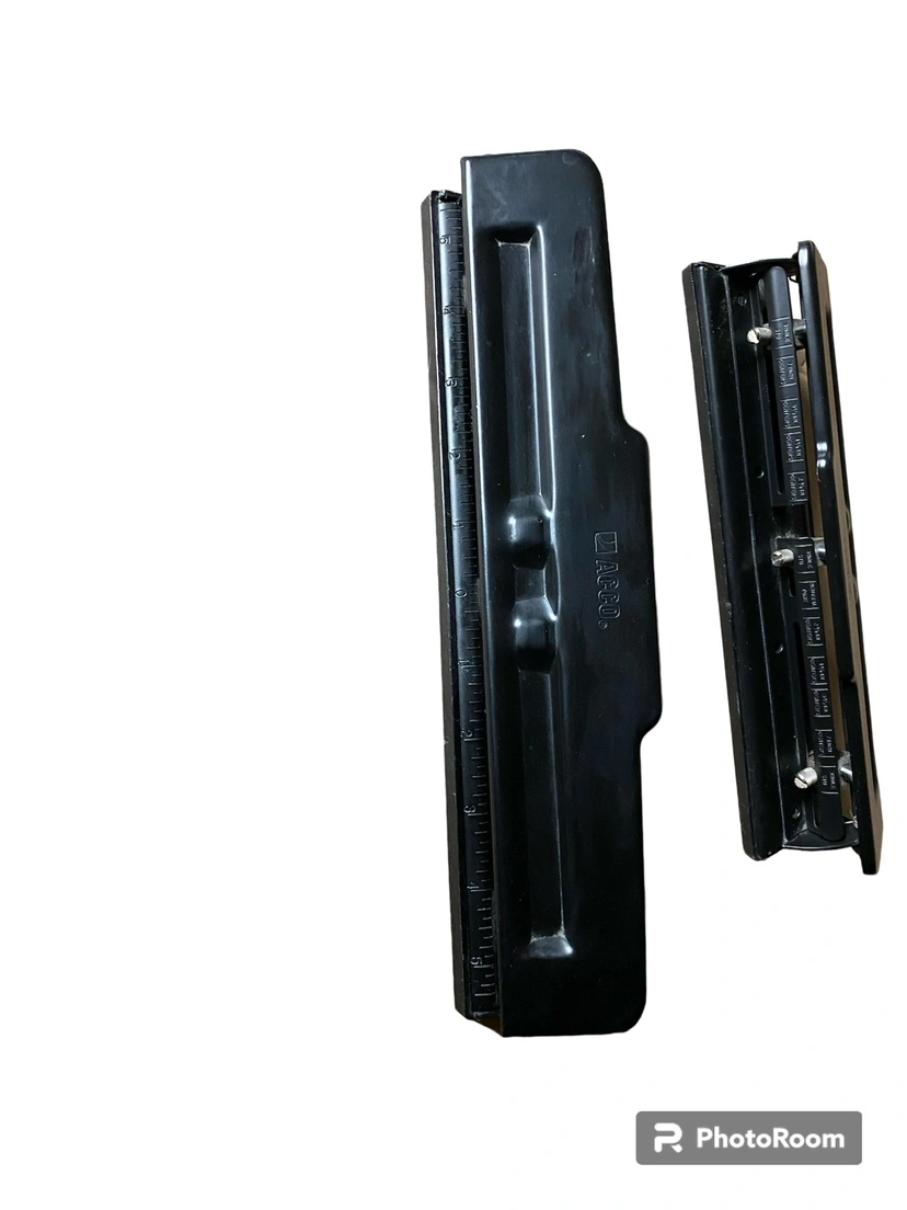 32This paper punch has multiple hole sizes. It is a heavy-duty punch and can be used to punch multiple sheets of paper at once.
