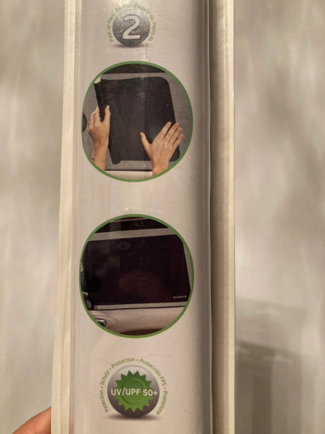 Cool Shade Roll-on Sun Shade. Attaches onto your car window (or any window). Attaches by static cling and re-usable. See pictures for details.