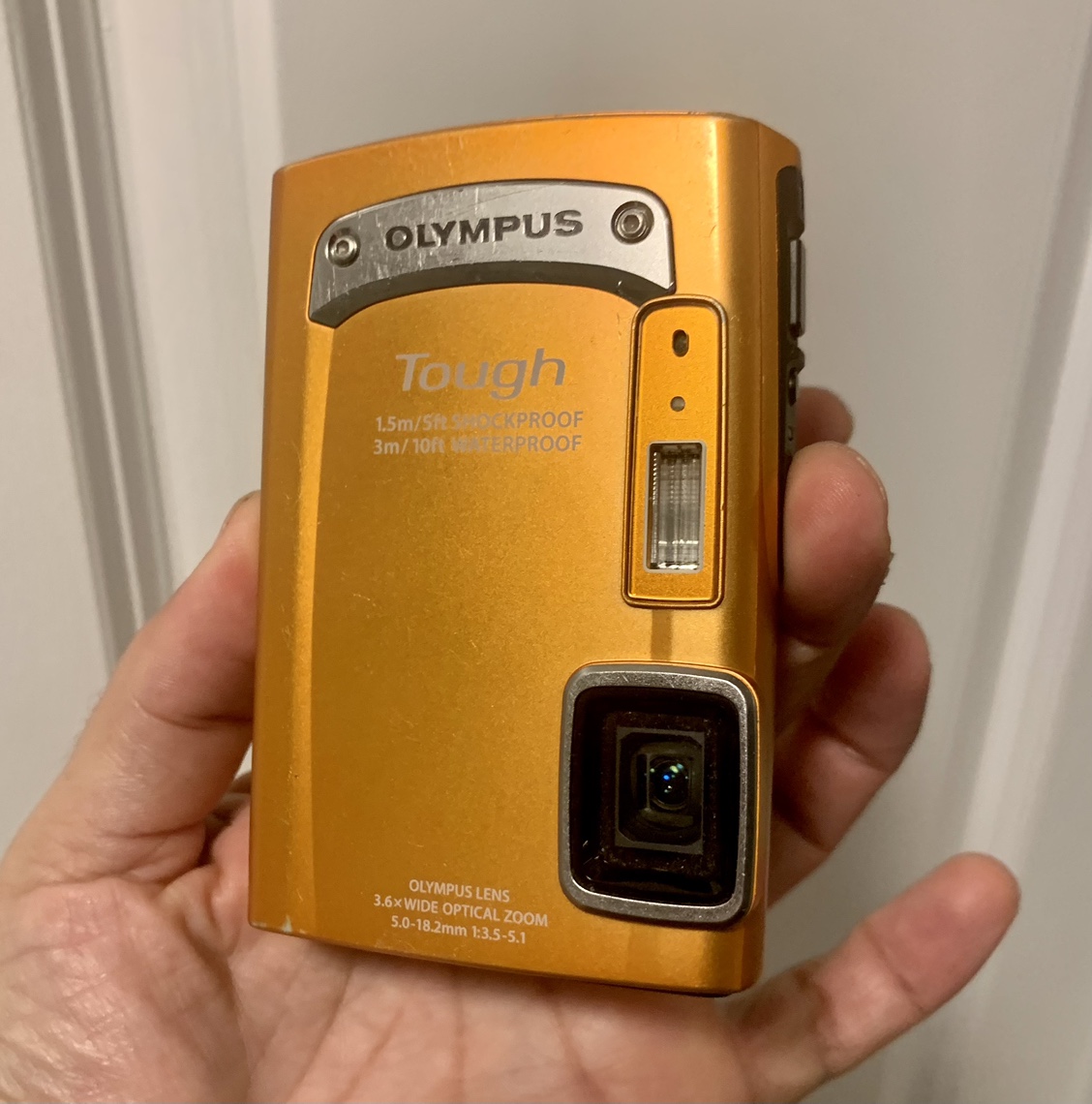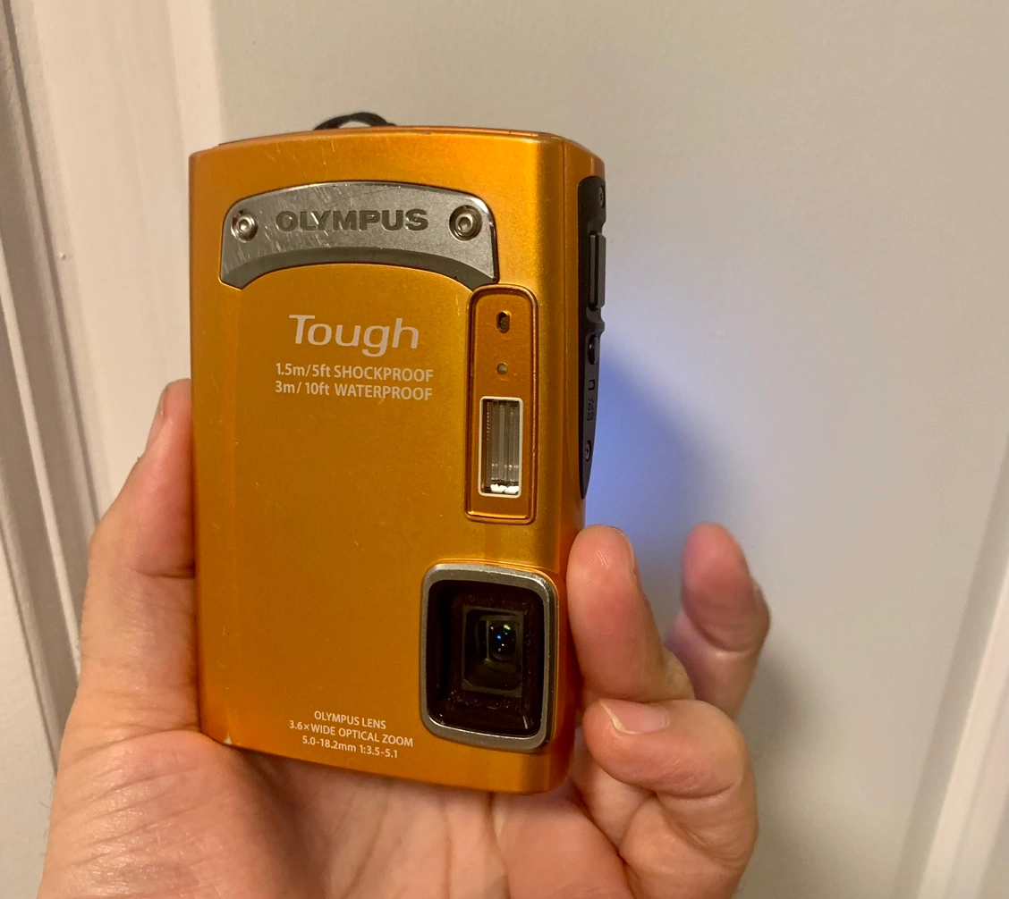 This is a tough, waterproof and shockproof digital camera from Olympus. It has a 14MP camera and a 3x optical zoom lens. It also has a variety of shooting modes, including macro, landscape, and sports. It comes with fully charged battery but no charger I’m including and sd card instead