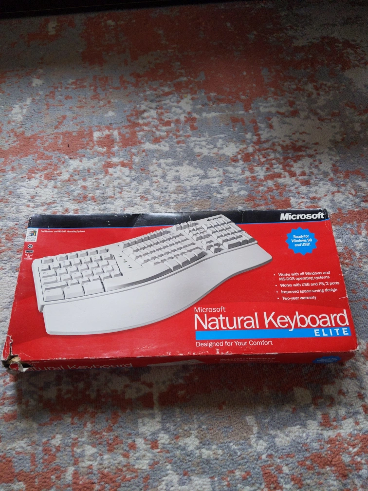 This keyboard is designed for comfort and comes in the original box. It is compatible with Windows and MS-DOS operating systems. Giving away because we don't need it.