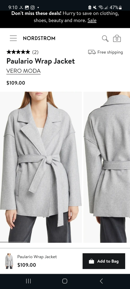 Bought this for my wife but she doesn't like the fit on her. Bought it at Nordstroms Closing so I can return it.