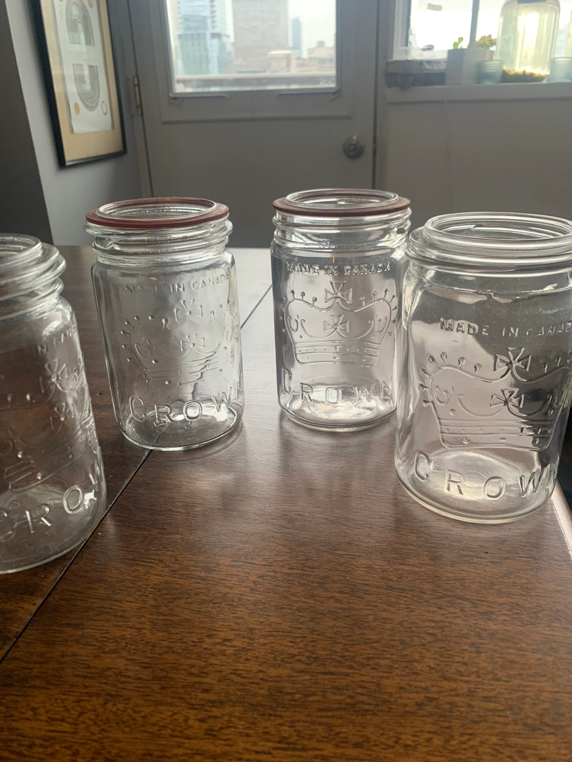 Buy & SellVintage Crown JarsVintage Crown Jars$17Four handsome vintage Crown jars, made in Canada. 2 still have canning rubber .ConditionLike newWHERE TO MEETRamsden Place ApartmentsView MapSELLERHalYorkville14315 reviews1 chats·2 favorites·57 viewsSEND CHAT TO SELLERHi Hal! I’m interested in your listing.Hi Hal! I’m interested in your listing.Get the Karrot app to chatSign In to chat