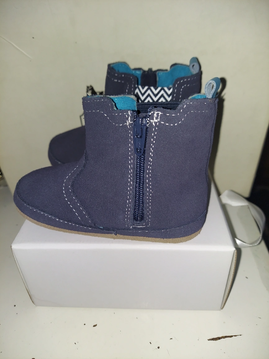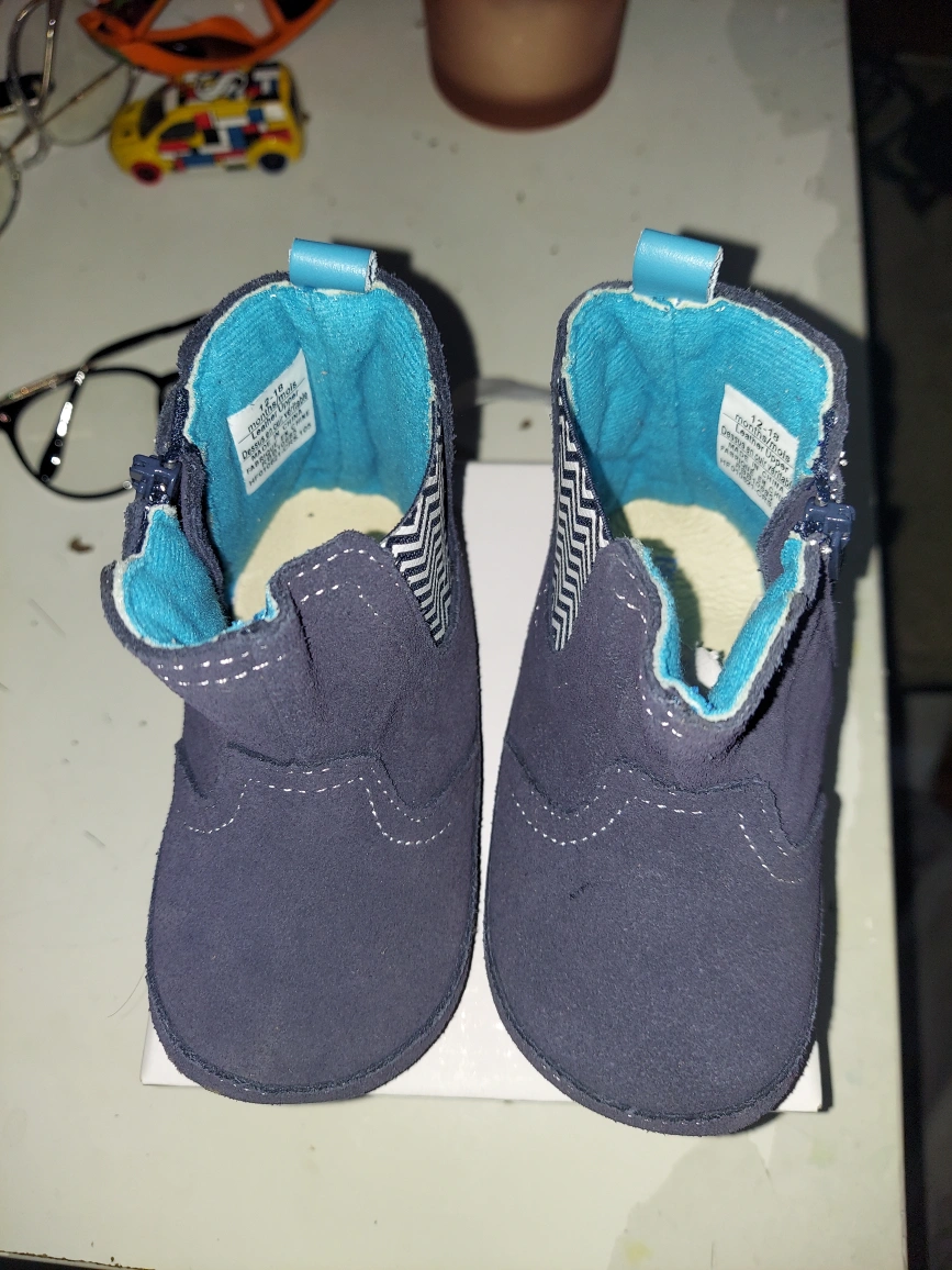 18Blue baby boy boots with zipper. Size 12-18 months.