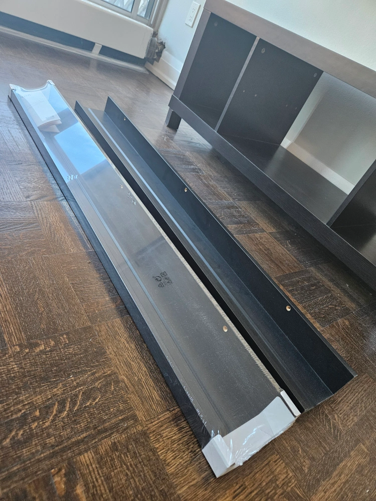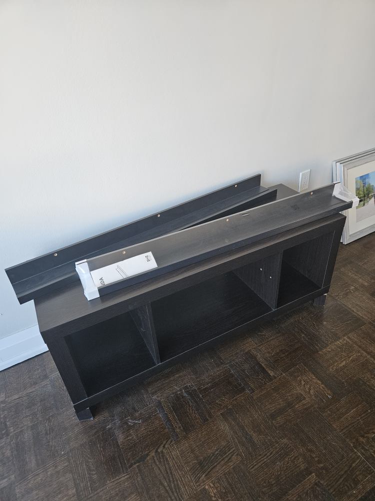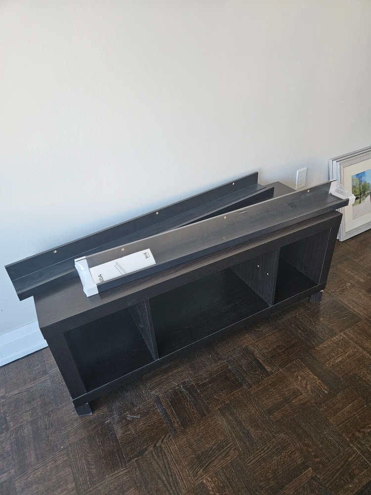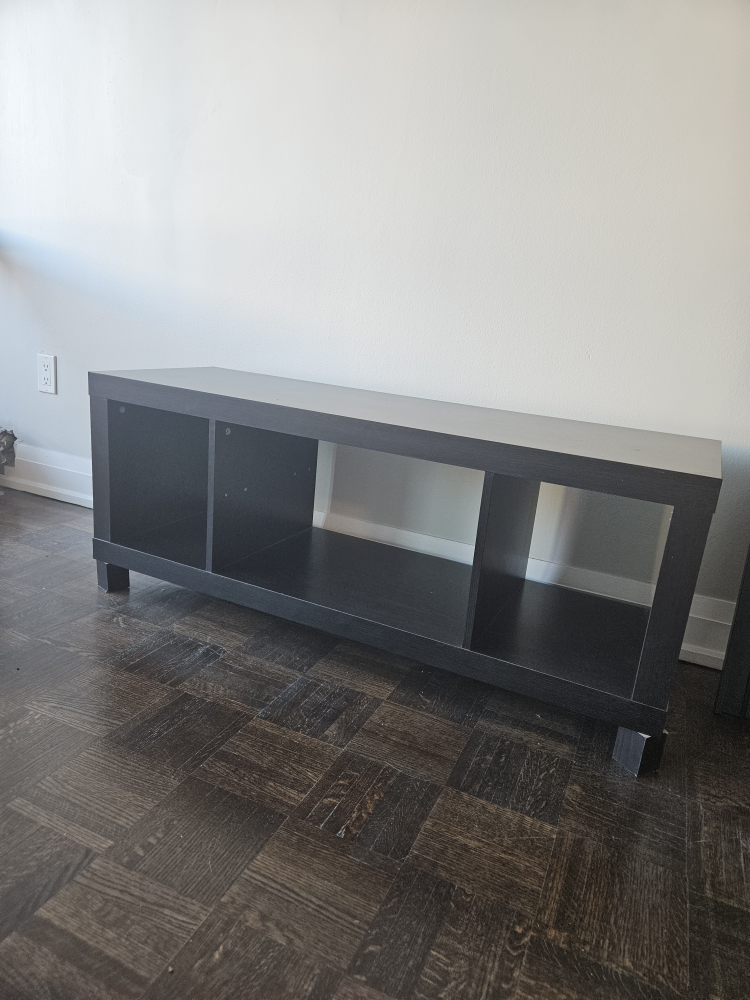 Moving sale: Black TV Stand + 2 Moslanda ikea shelves