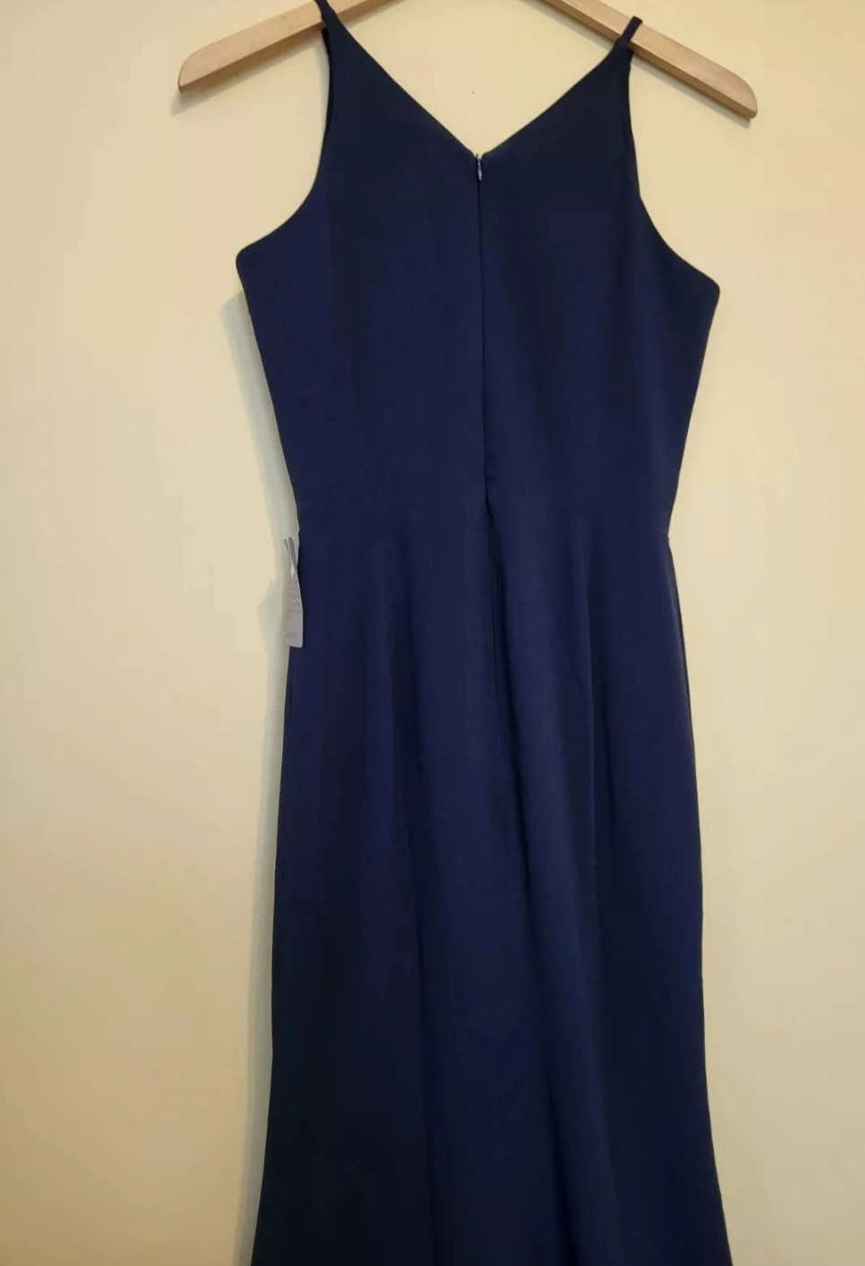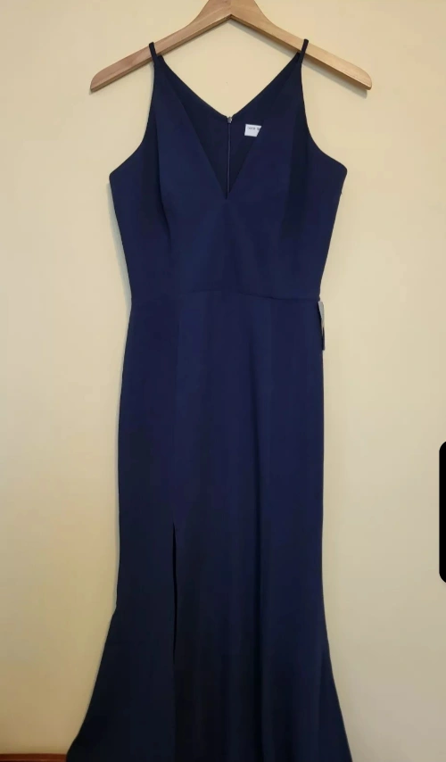 Gown in Midnight Blue is the perfect choice for any formal occasion. The dress features a seductive deep V-neckline, spaghetti straps, and a hidden back zip closure for easy wear. This long floor length body-hugging maxi dress is perfect for any season, whether it's winter, summer, fall, or spring.