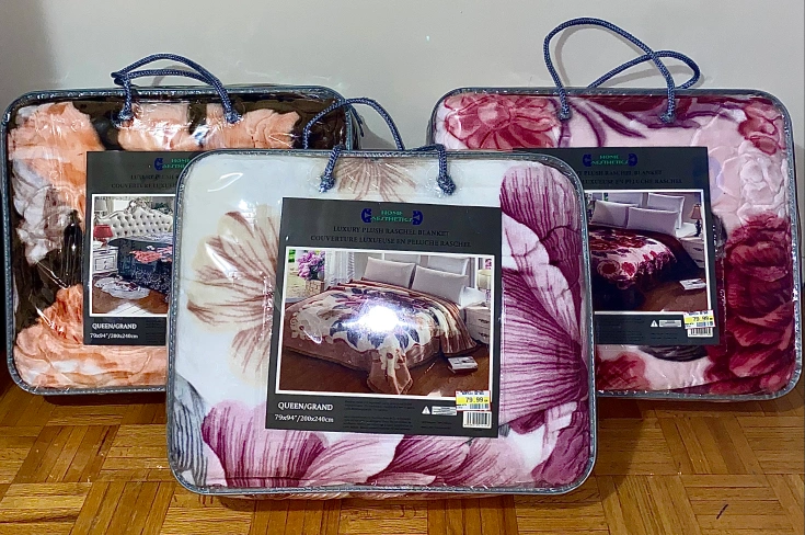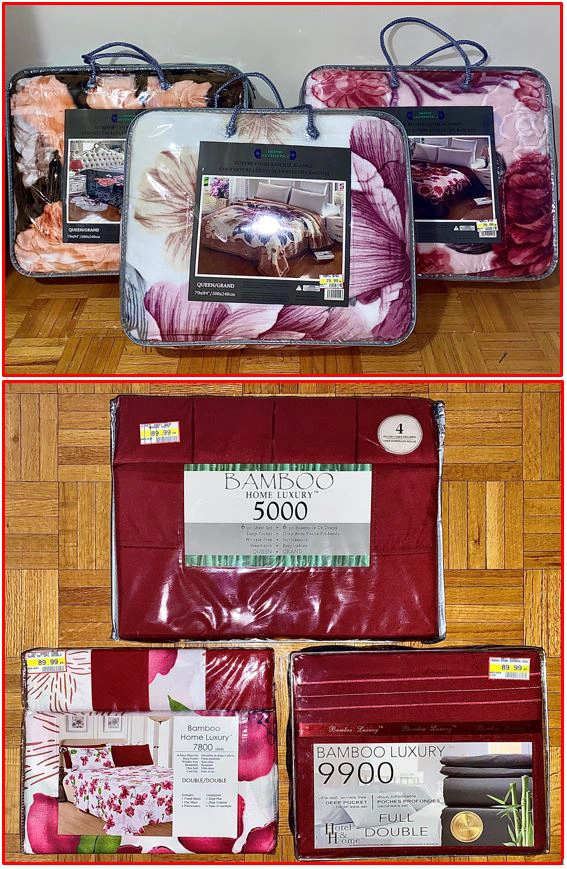 Home Aesthetics. Luxury Plush Raschel Blankets, Queen Size (3 available). - Retail each selling at $79.99 + taxes ($90.39 including taxes) - Reduced Price $59 each BAMBOO HOME LUXURY Bedsheet Sets – Double (2 available); Queen (1 available). - Retail each selling at $89.99 + taxes ($101.69 including taxes) - Reduced Price $69 each Brand new in Box. Never used. Free delivery upon request.
