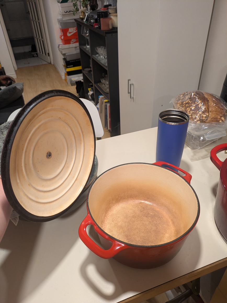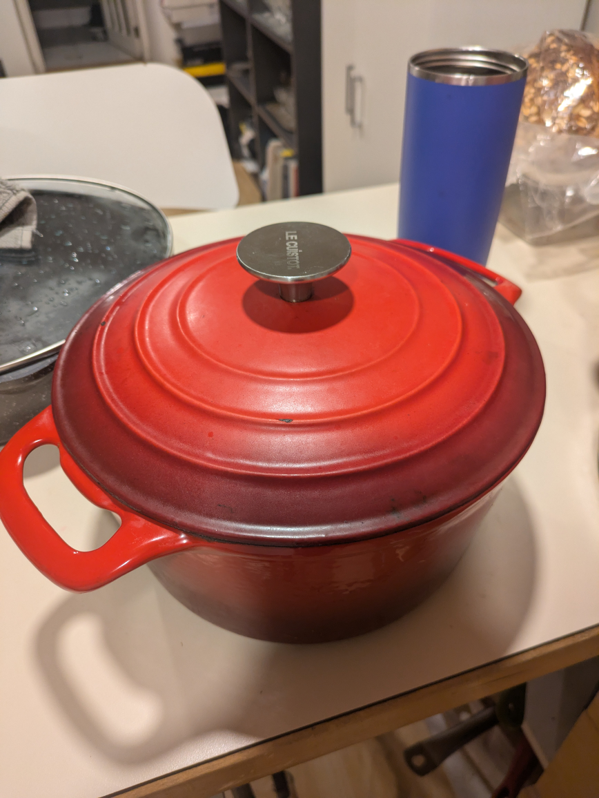 Buy & SellLe Cuistot Dutch OvenLe Cuistot Dutch Oven$30 Red Le Cuistot Dutch Oven with lid. 9 inch diameter.ConditionGoodDimensions9 x 5 inchWHERE TO MEETDundas WestView MapSELLERverifiedChloeDundas West1419 reviews3 chats·1 favorites·47 viewsSEND CHAT TO SELLERHi Chloe! I’m interested in your listing.Hi Chloe! I’m interested in your listing.Get the Karrot app to chatSign In to chat