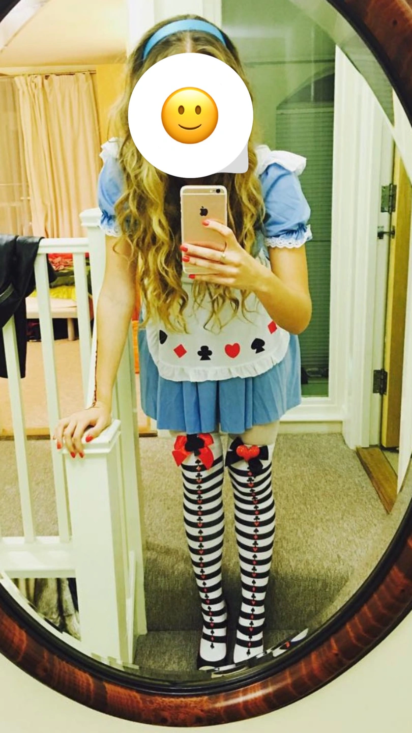 Alice in the Wonderland costume. Comes with an apron. Size small, but I’m Medium and it worked out. Worn once, great condition. Giving the matching stockings for free. They have small stains because of my boots, but they are washed and also worn only once.