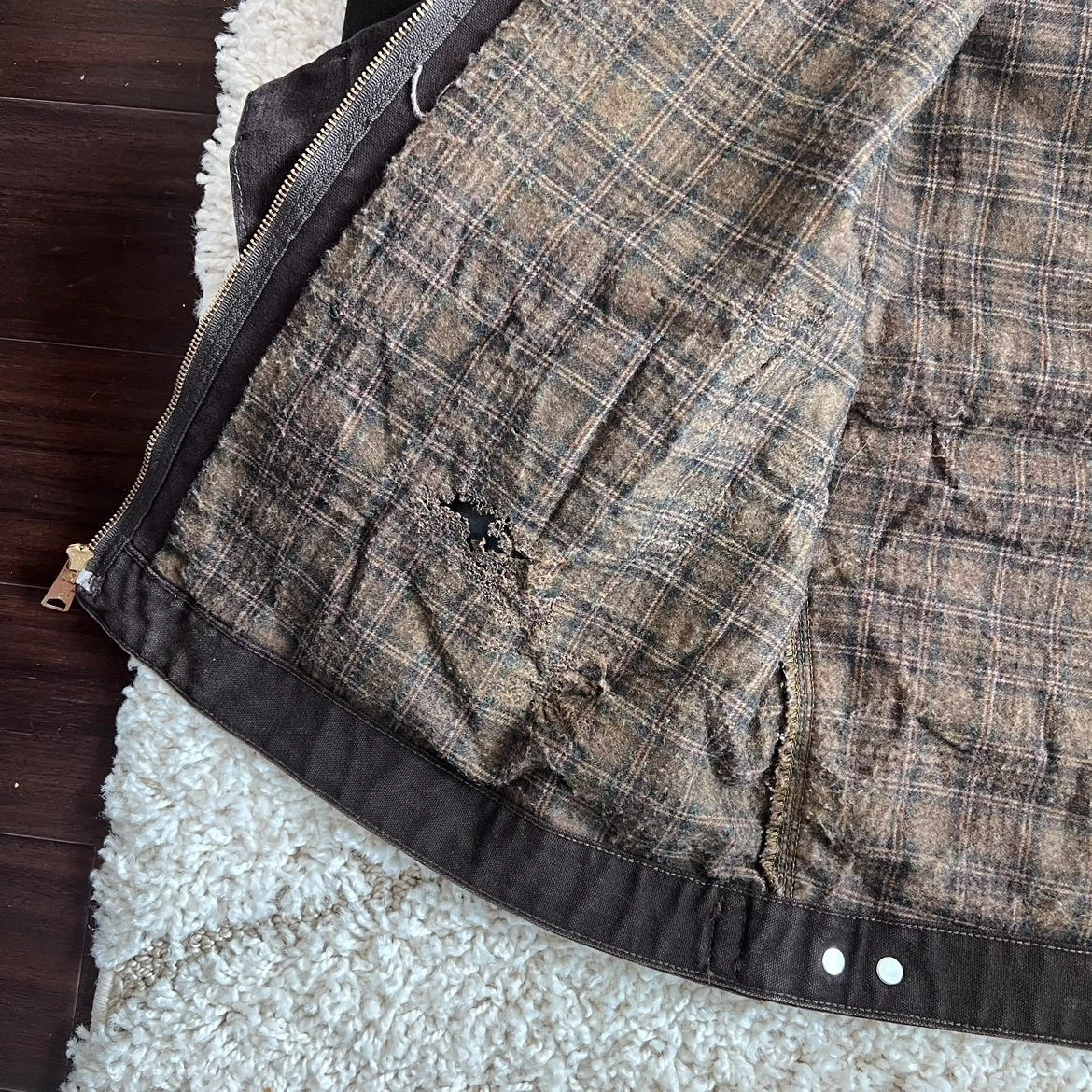 *Inner lining on the right side torn off a bit.