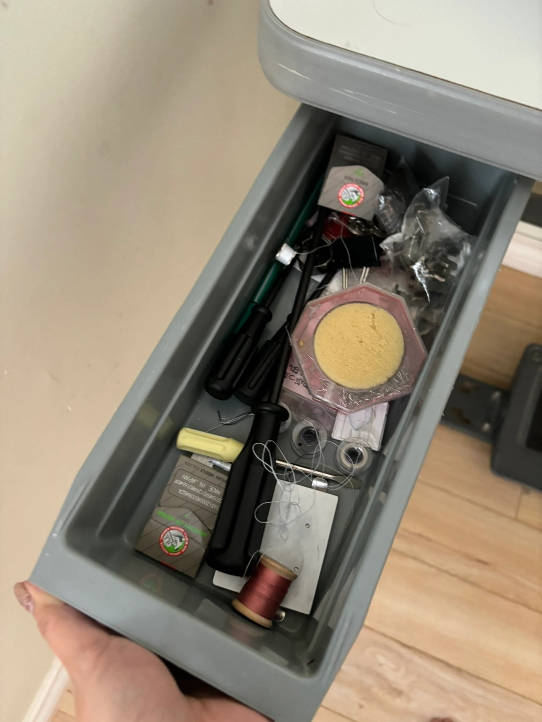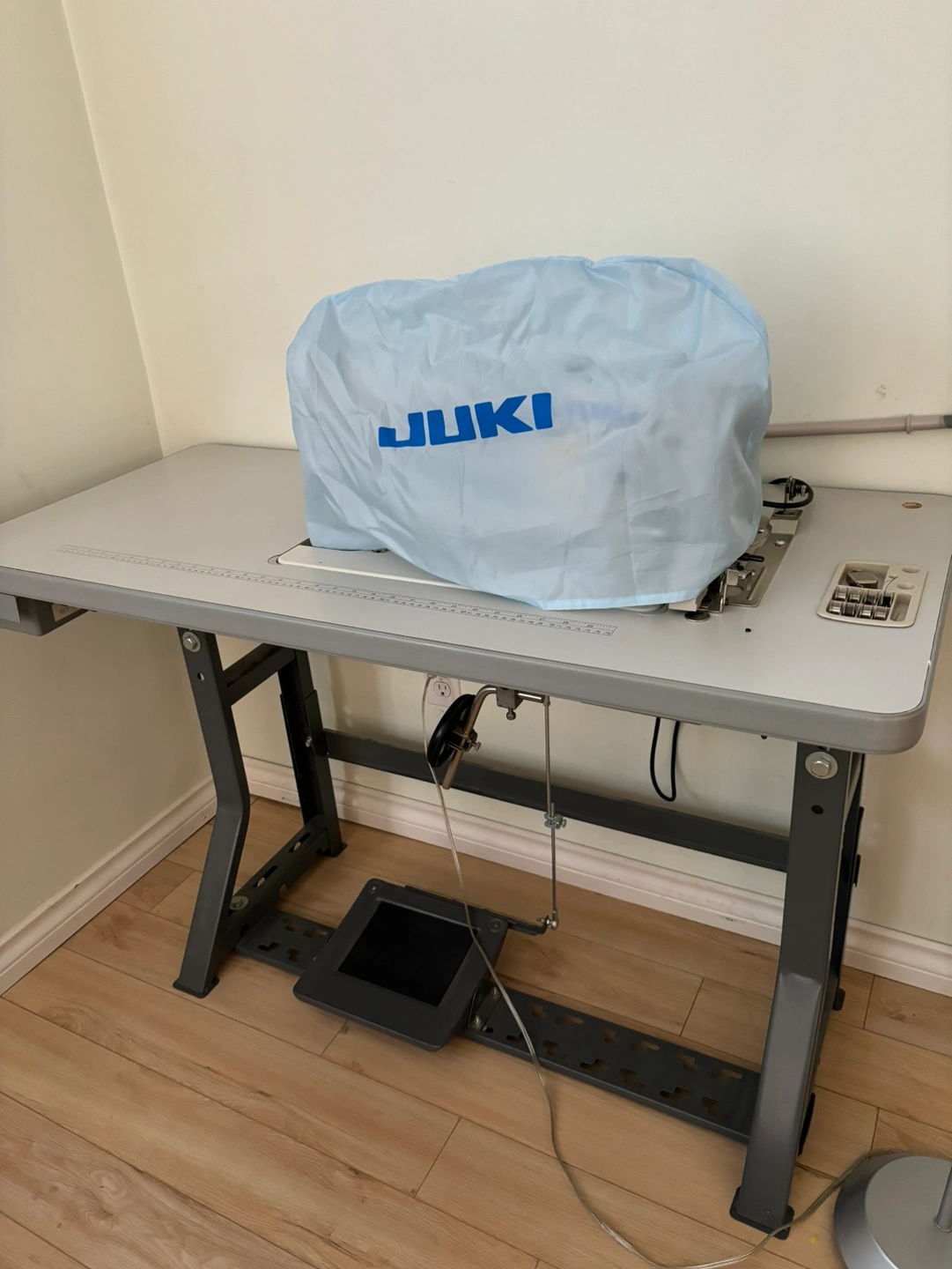 Industrial sewing machine in good working condition with a table and accessories. Used to study fashion design, I bought it brand new and I only used it less than 10 times. It has been sitting at home for years! Don’t have the time to sew anymore. Hopefully can a good home for this sewing machine.