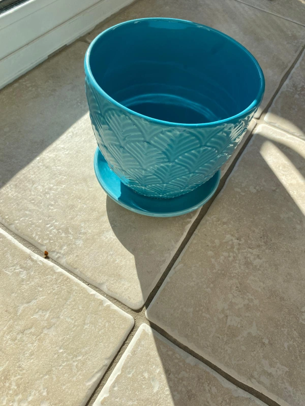 Blue Ceramic Planter with Saucer