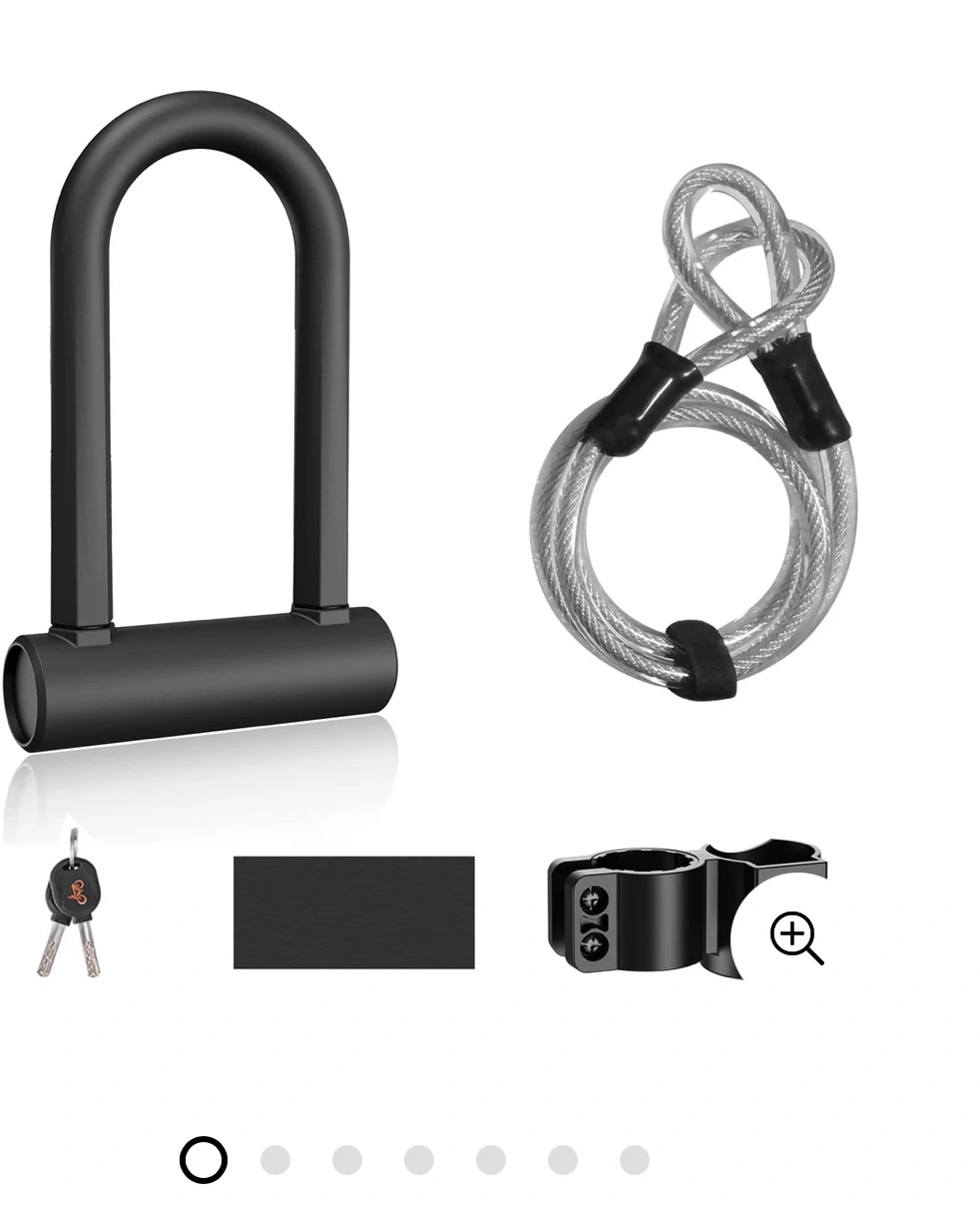 U-lock with cable for added security. Comes with two keys.