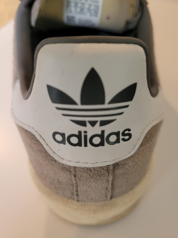 Women's Grey suede with white Adidas accents.