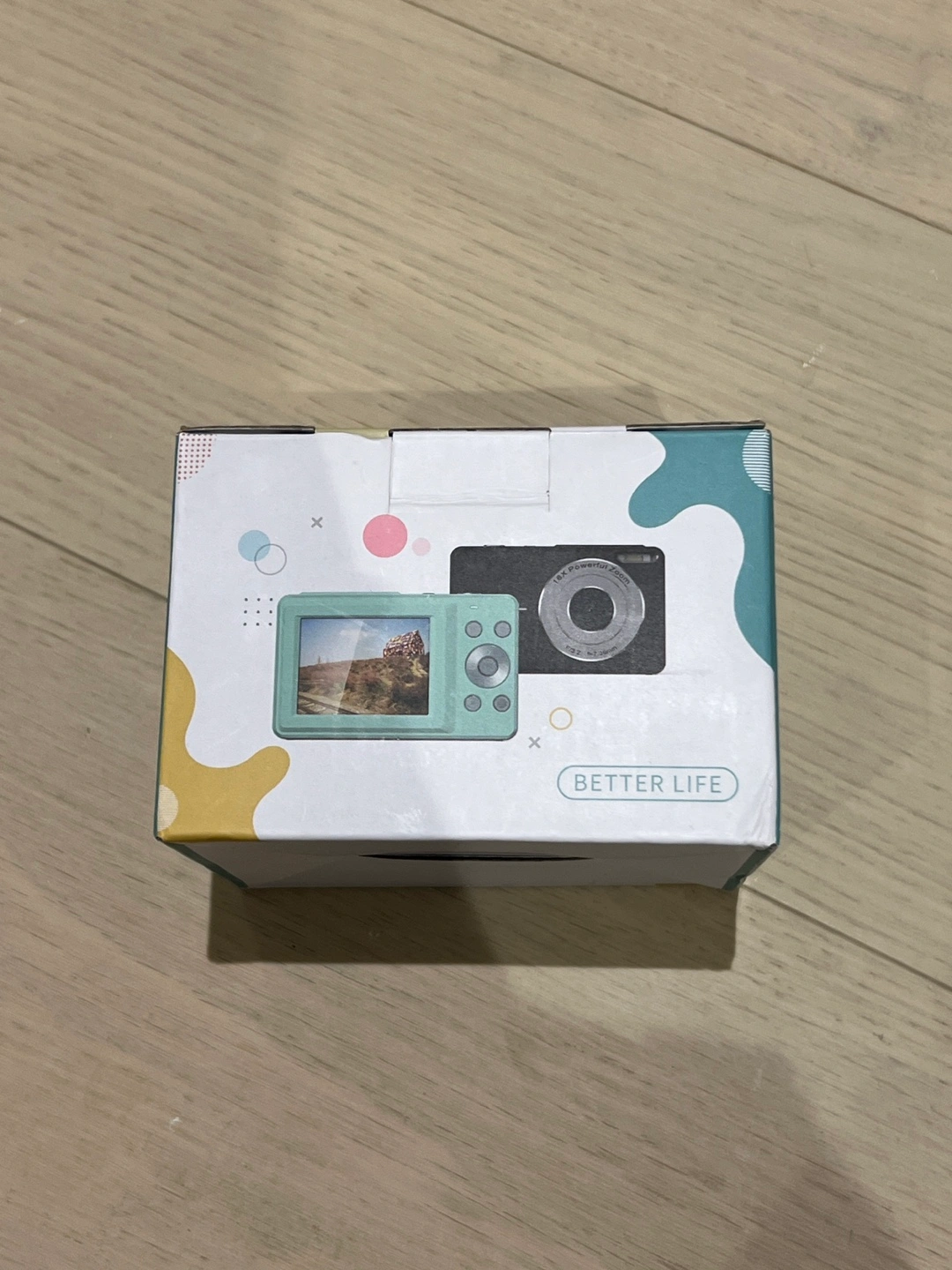 This is a digital camera with a 16x zoom and 44 megapixels. It is pink and has a silver lens. Brandnew with the box!