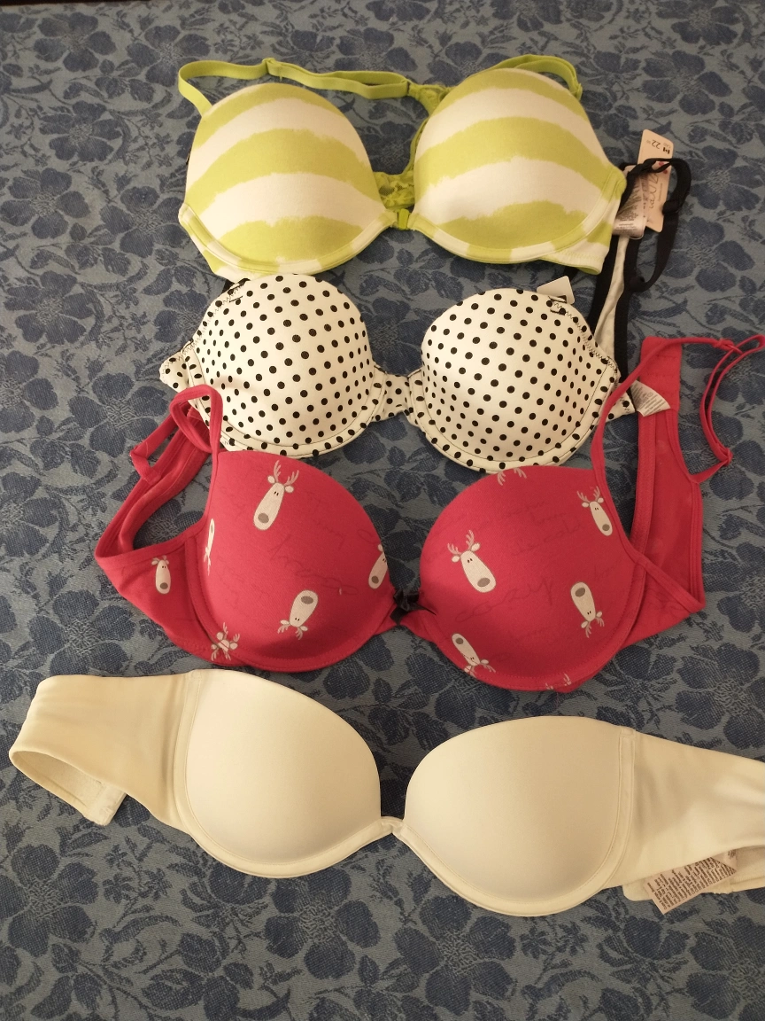 White strapless push up bra, 30c, has rubber back so it doesn't slip during wear