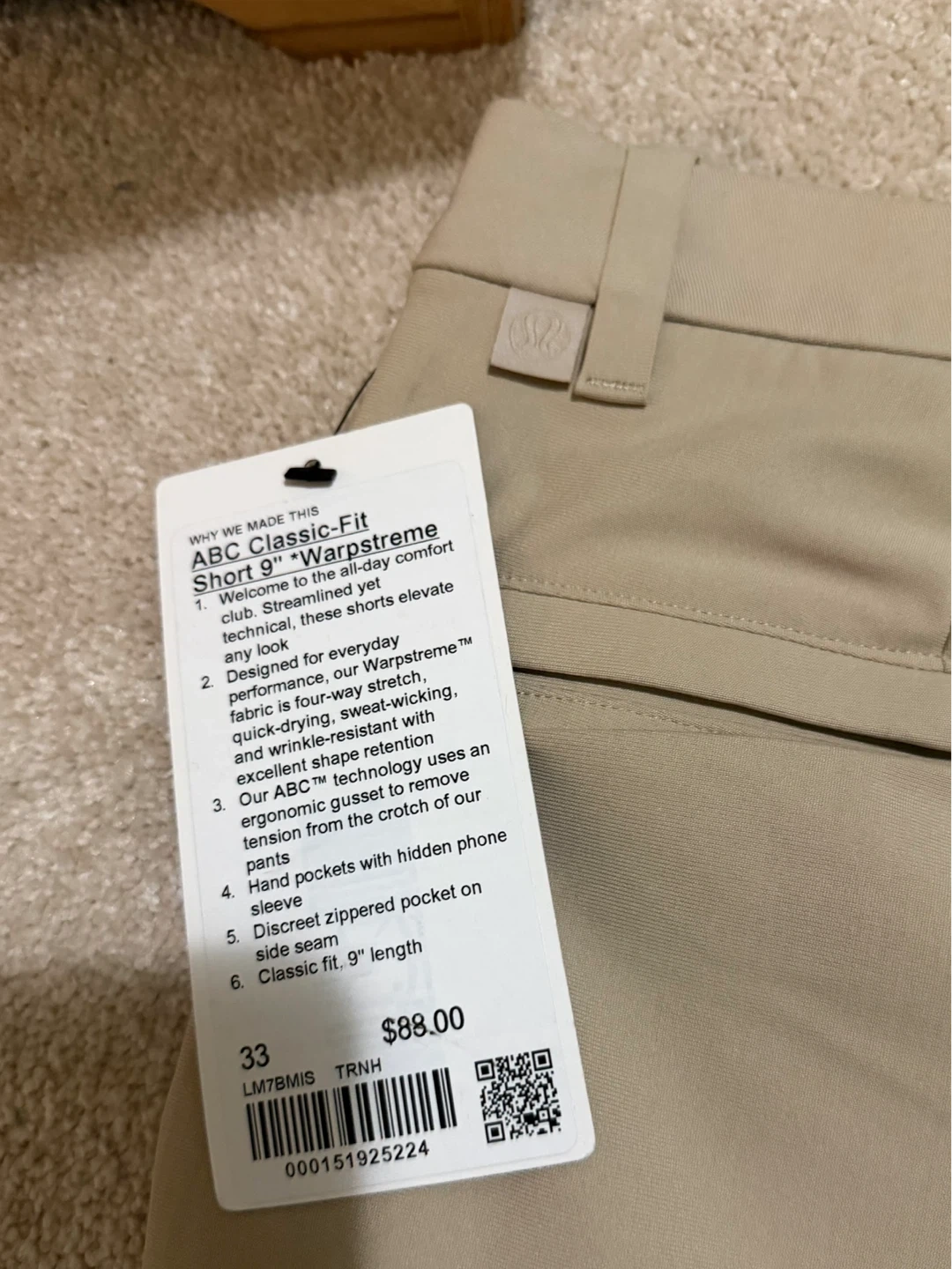 Lululemon ABC Classic-Fit Short 9" Warpstreme Khaki Size 33