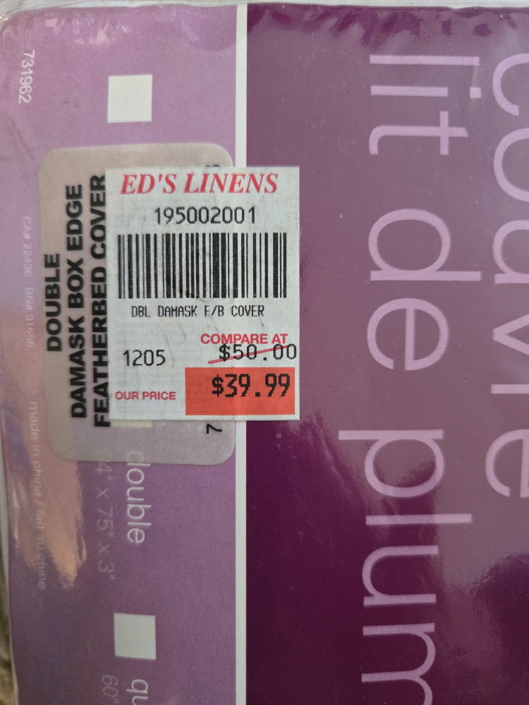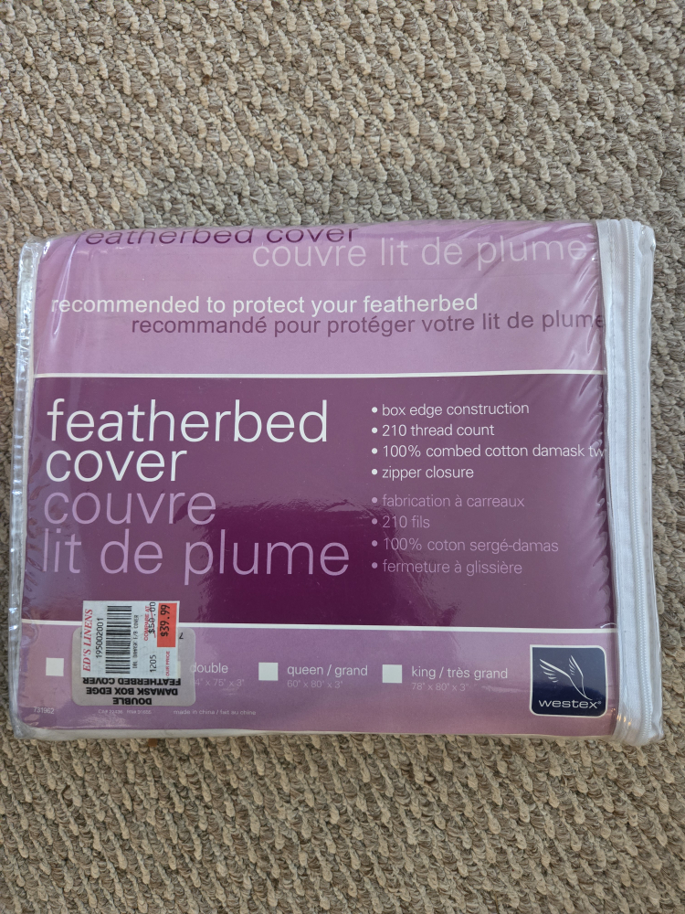 Double-sized featherbed cover.
