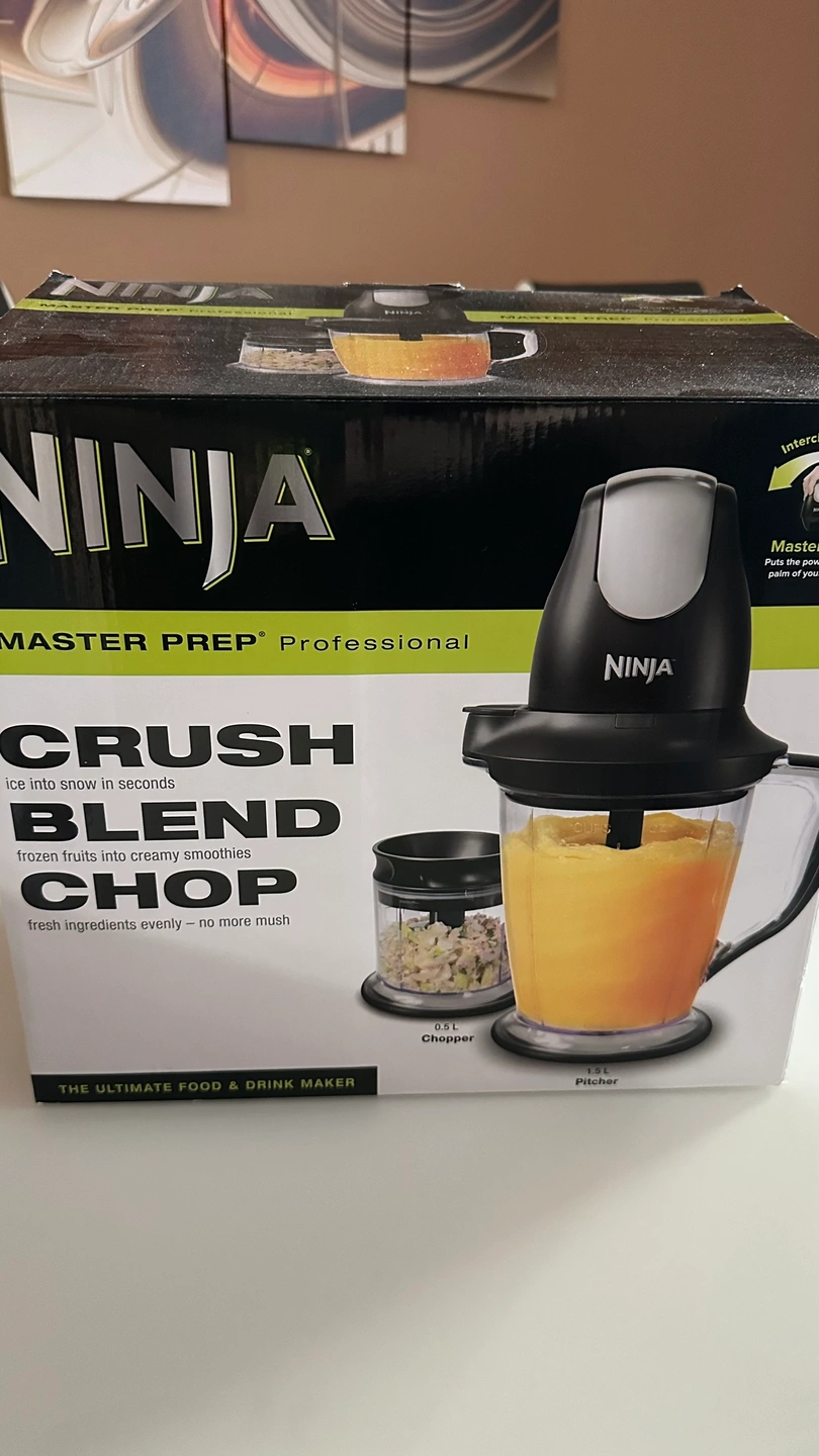 Ninja Master Prep Professional Blender with 1 pitchers and a chopper bowl. Comes with instruction manual, quick start guide, splash guards, lids and a power pod.