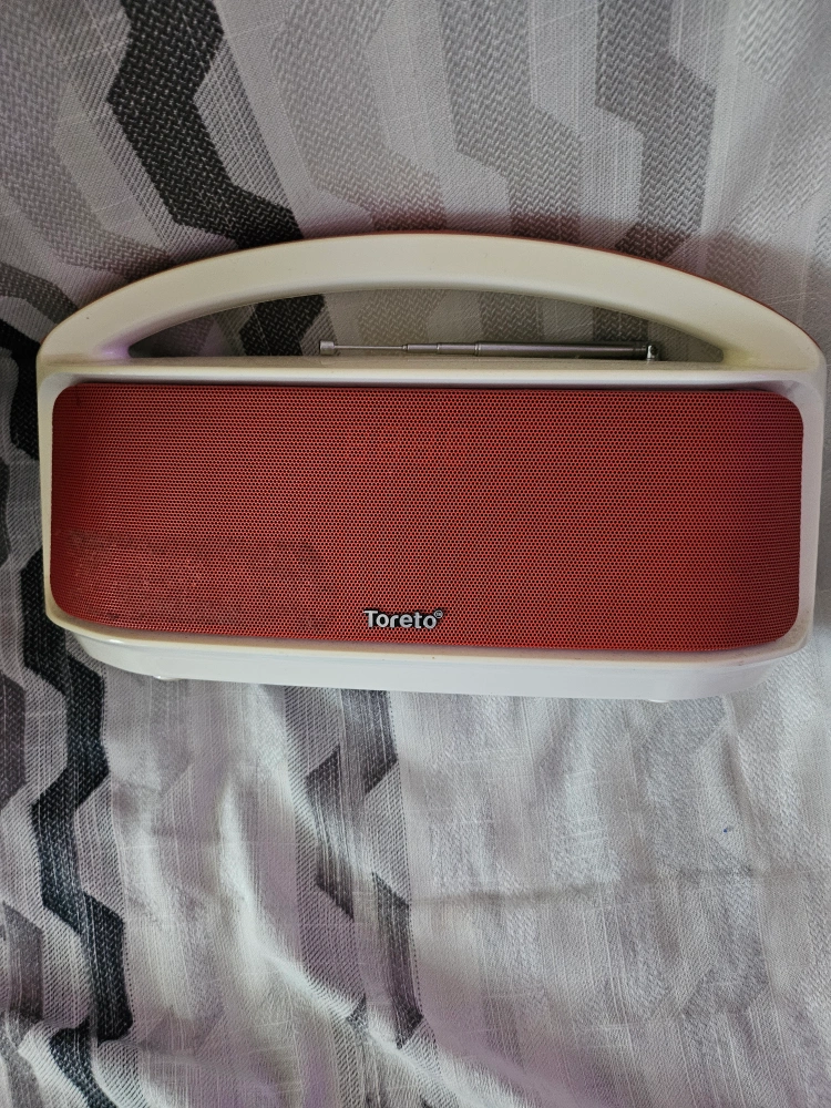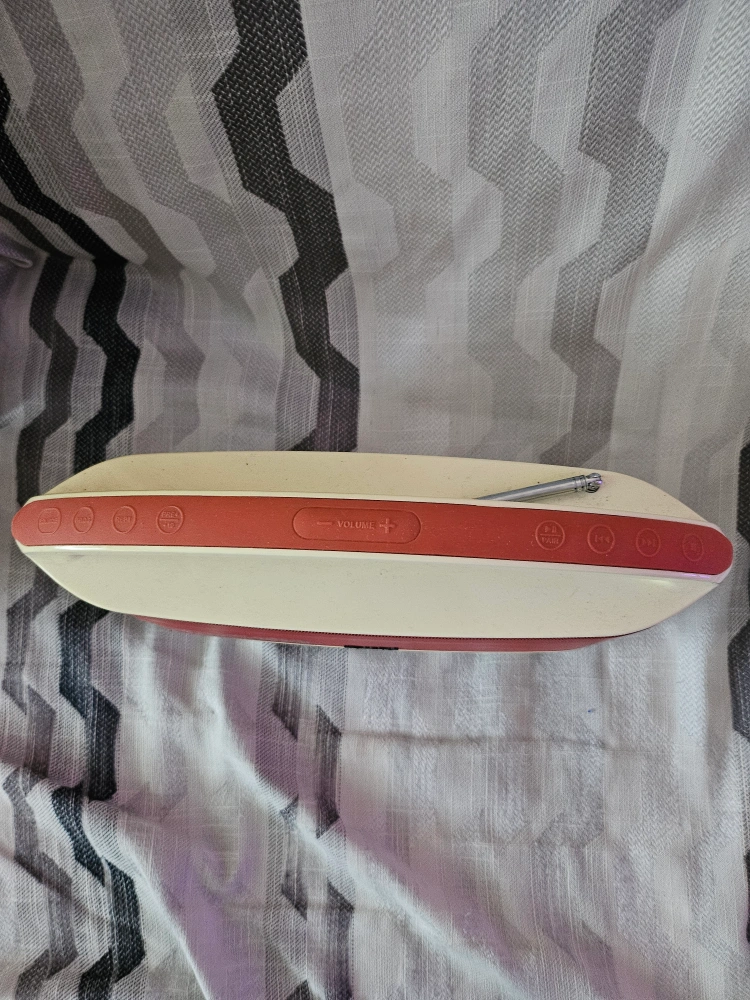 Portable radio with a USB port and SD card slot. It has a built-in speaker. This Boombox never let me down in any practice of our zumba, line dancing and outting music all day and night. In good condition.