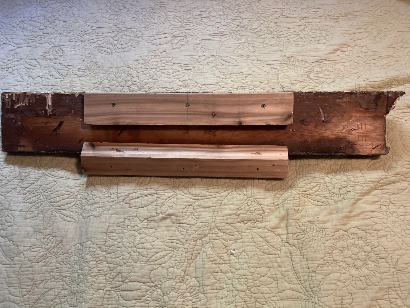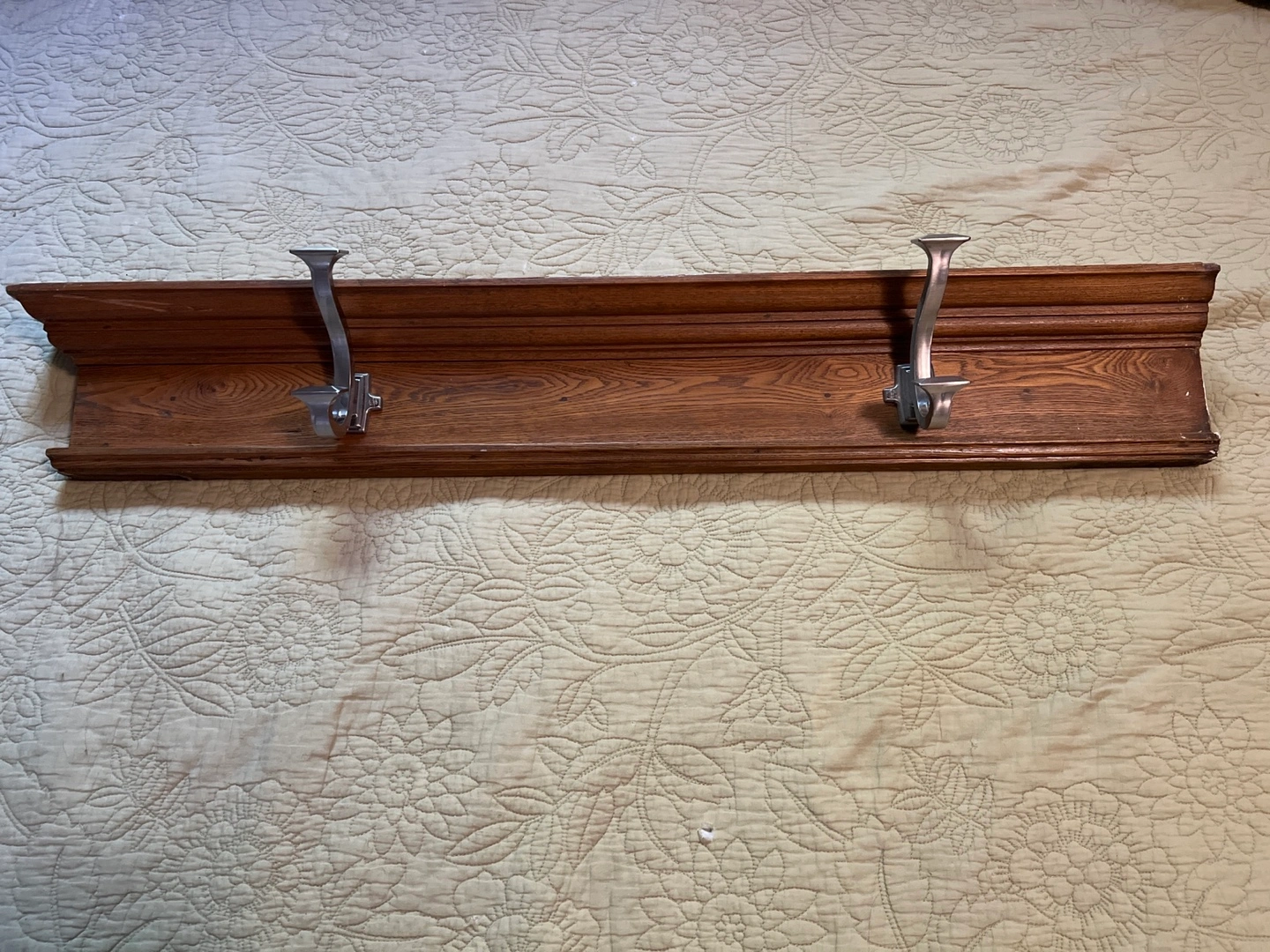 Coat rack made from a piece of molding from an old farm house.