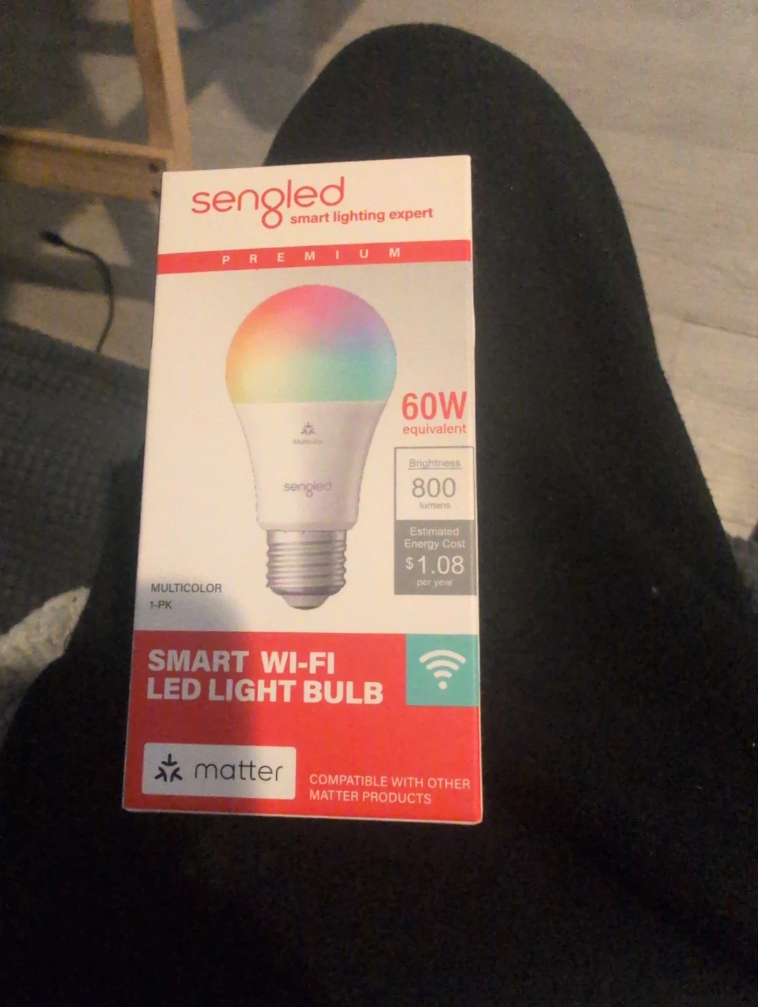 This is a Sengled multicolor smart Wi-Fi LED light bulb. It's a 60W equivalent bulb with 800 lumens brightness. It's compatible with other Matter products.