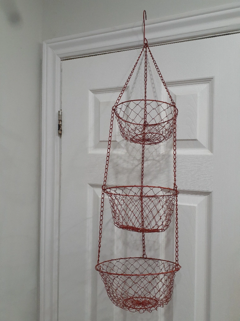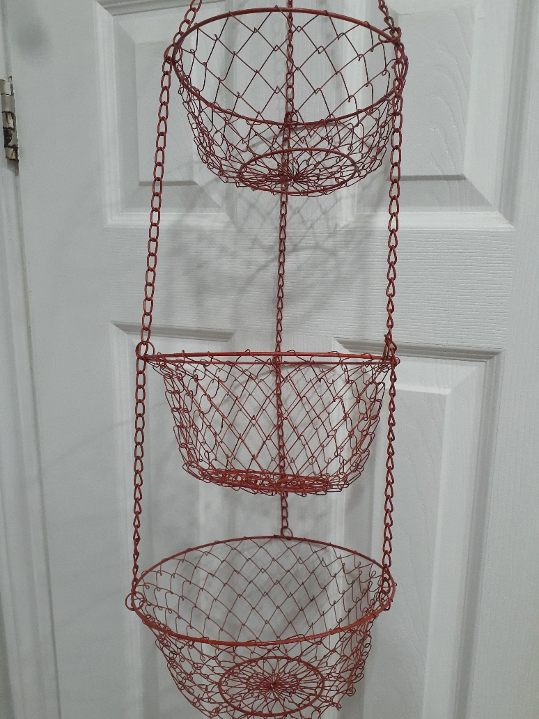 Beautiful Red Mesh Wire Hanging Basket. Excellent Condition. Very Durable. can be used for plants, fruits, veggies etc.. smoke and pets free home.