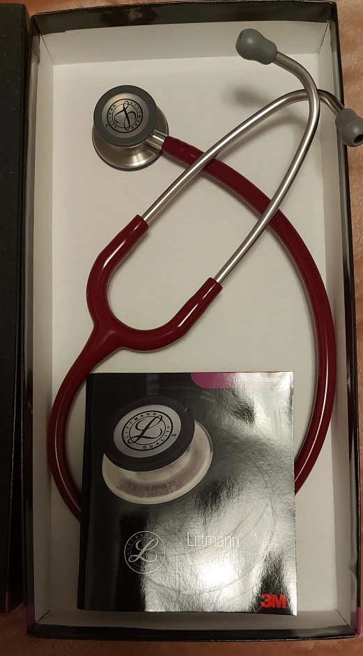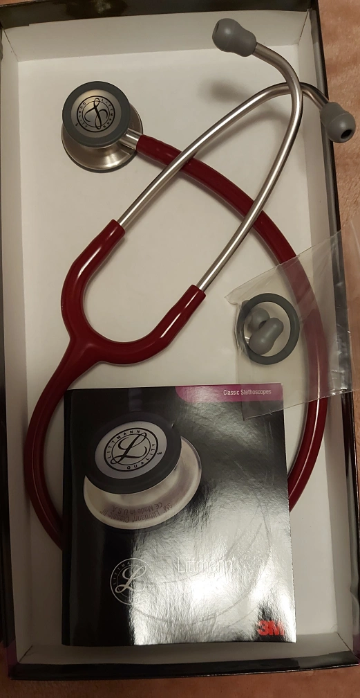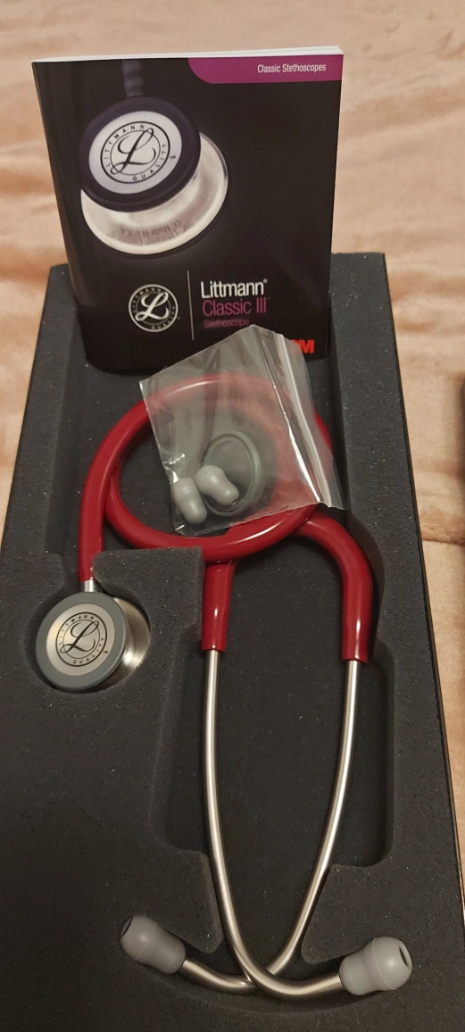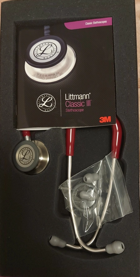 This is a gently used Littmann Classic III Stethoscope in burgundy. It comes in its original box with the manual.
