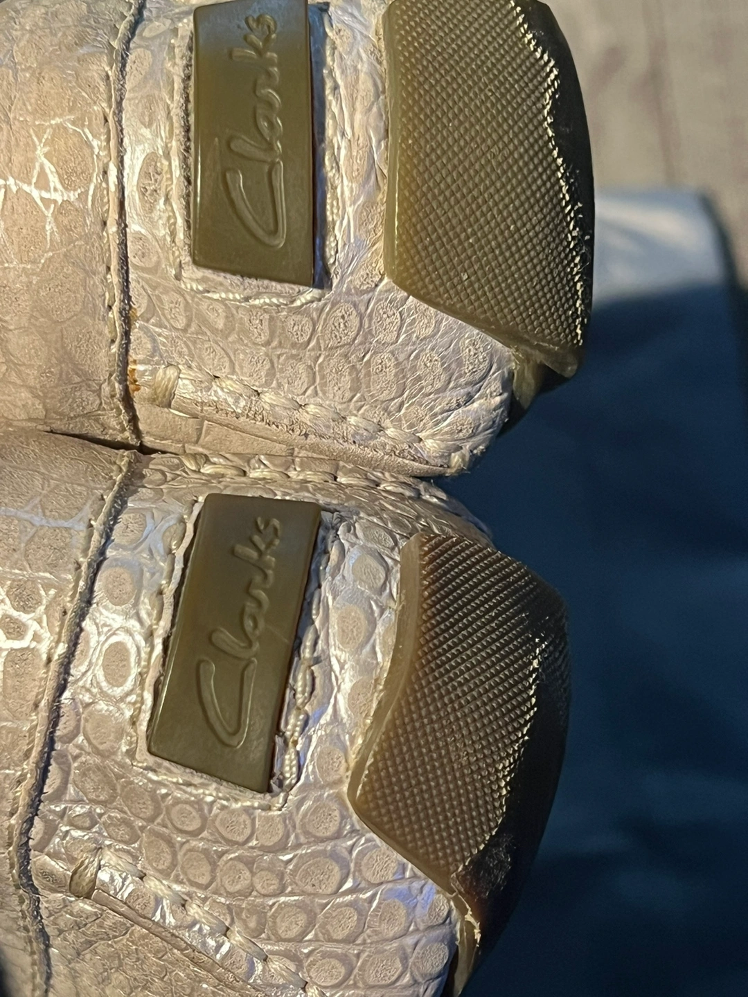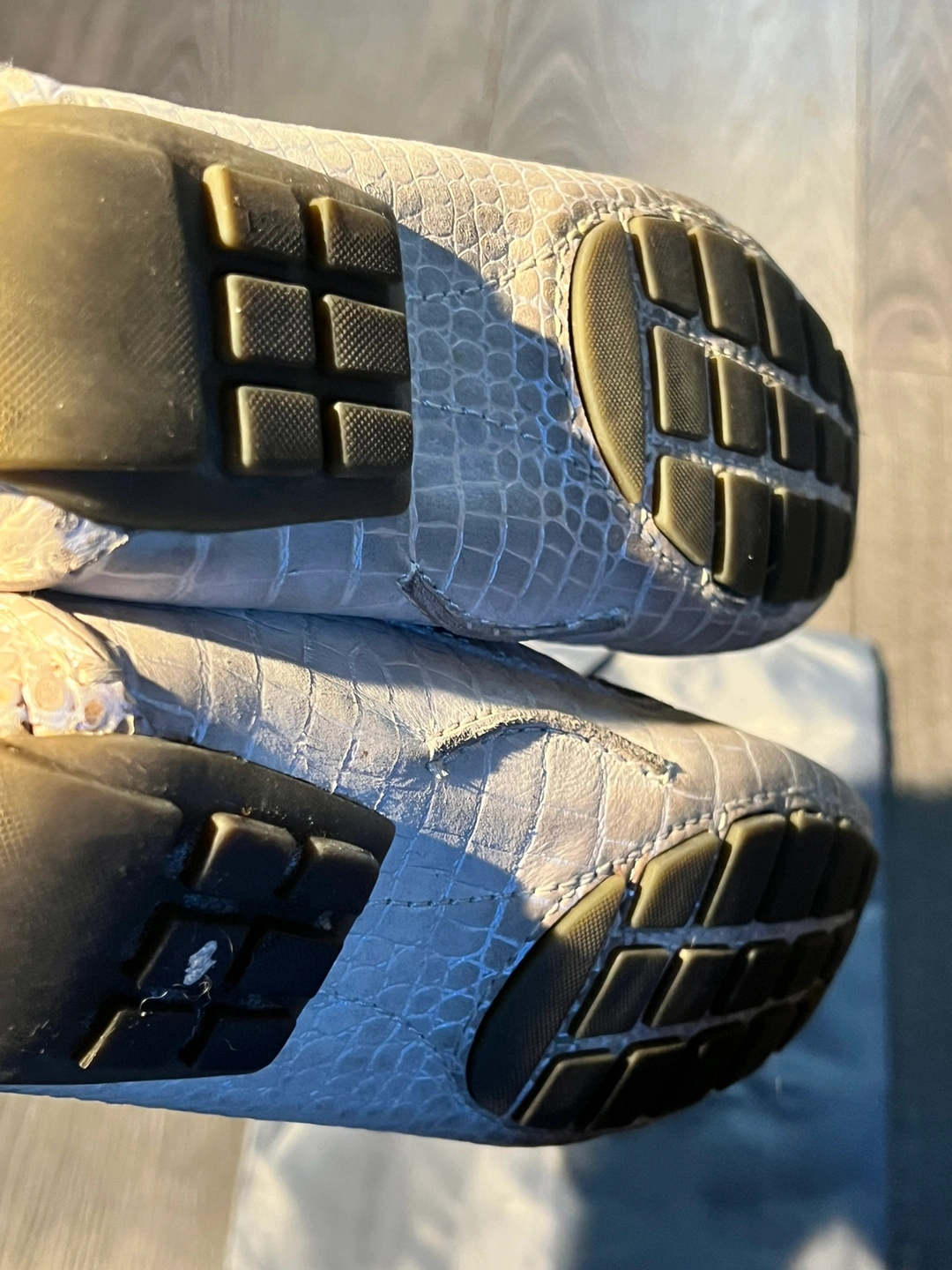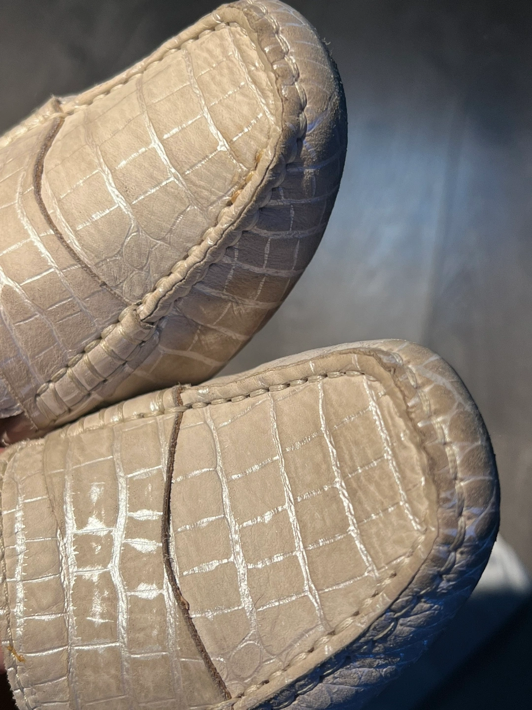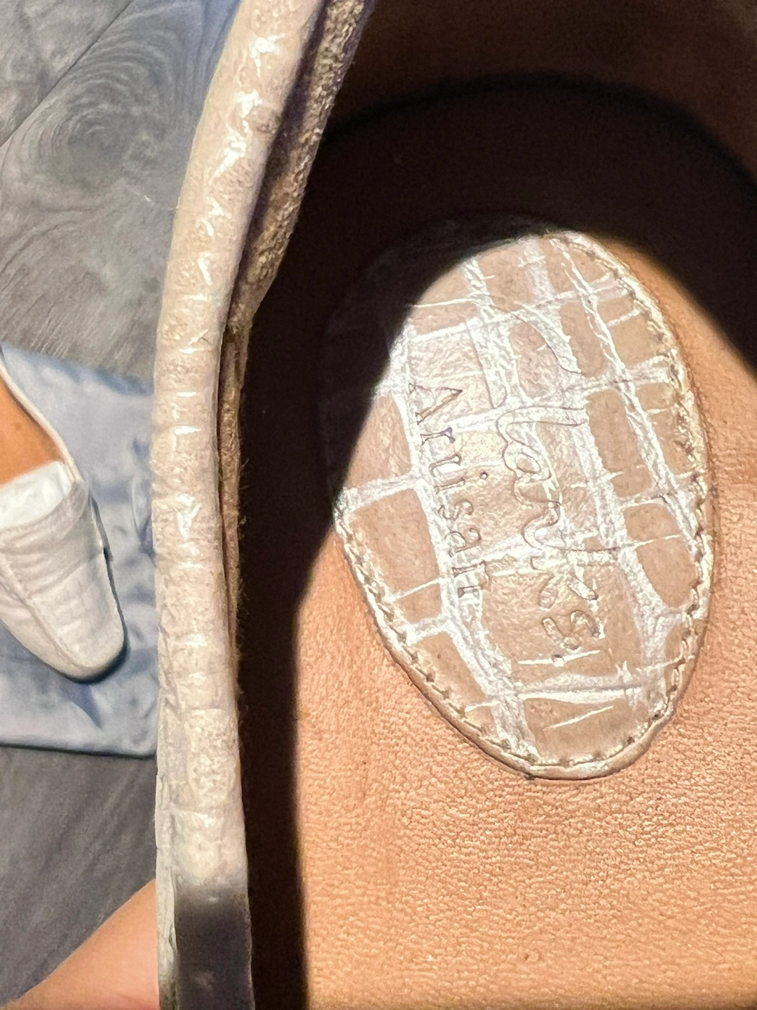 These are comfortable women's loafers with a crocodile embossed leather upper. They feature a slip-on design with a cushioned footbed.