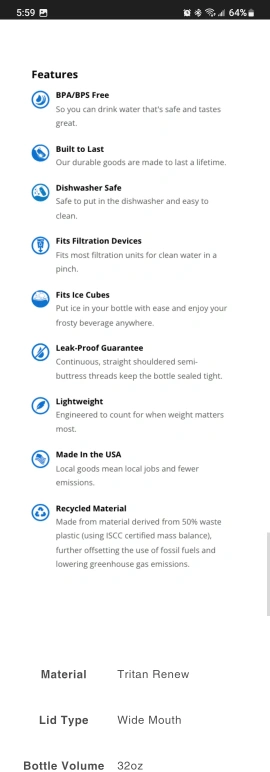 Nalgene Water Bottle 32 oz/1000 ml