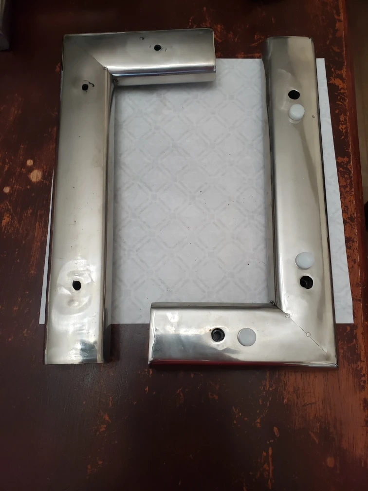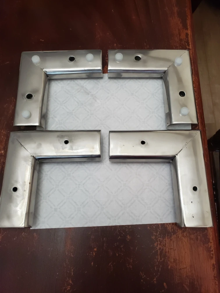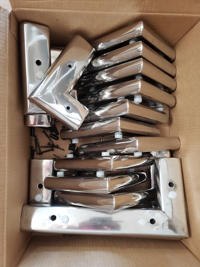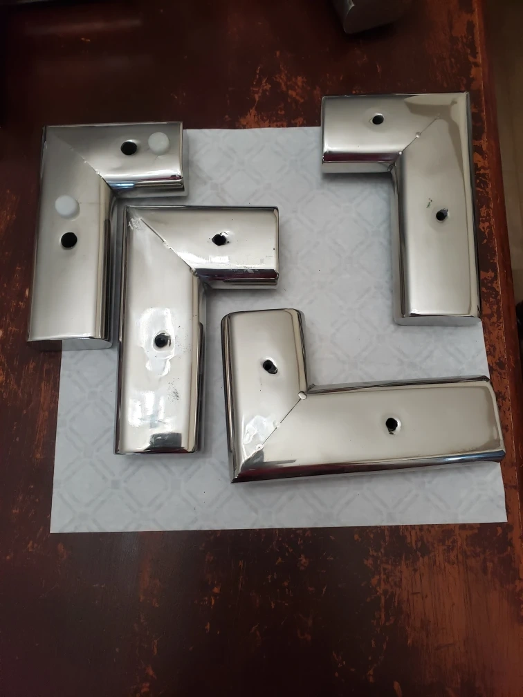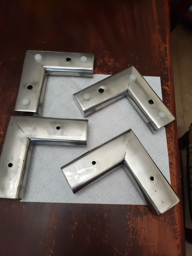 stainless steel corner sofa braces, each with four holes for mounting.brand new
