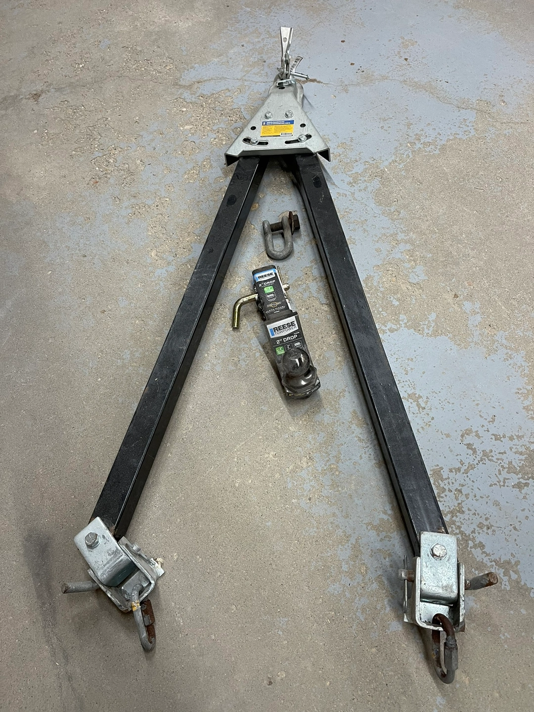 Only used a few times. Transport vehicles and trailers up to 5,000 lb with this steel tow bar. It features an adjustable width, two 39-3/4 x 2 in. hollow structural-steel tubes and quickly disengages using quick-release pins. Also includes Reese 2” Drop kit and receiver pin. First come first served, pickup in Windsor Park. Smoke free home, cross posted.