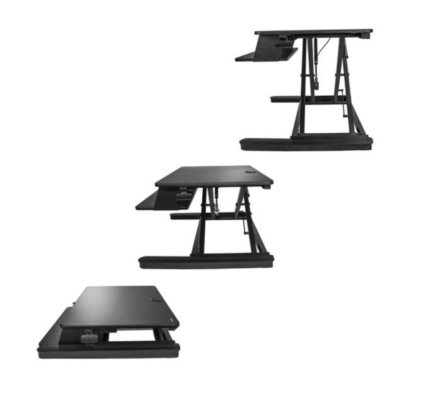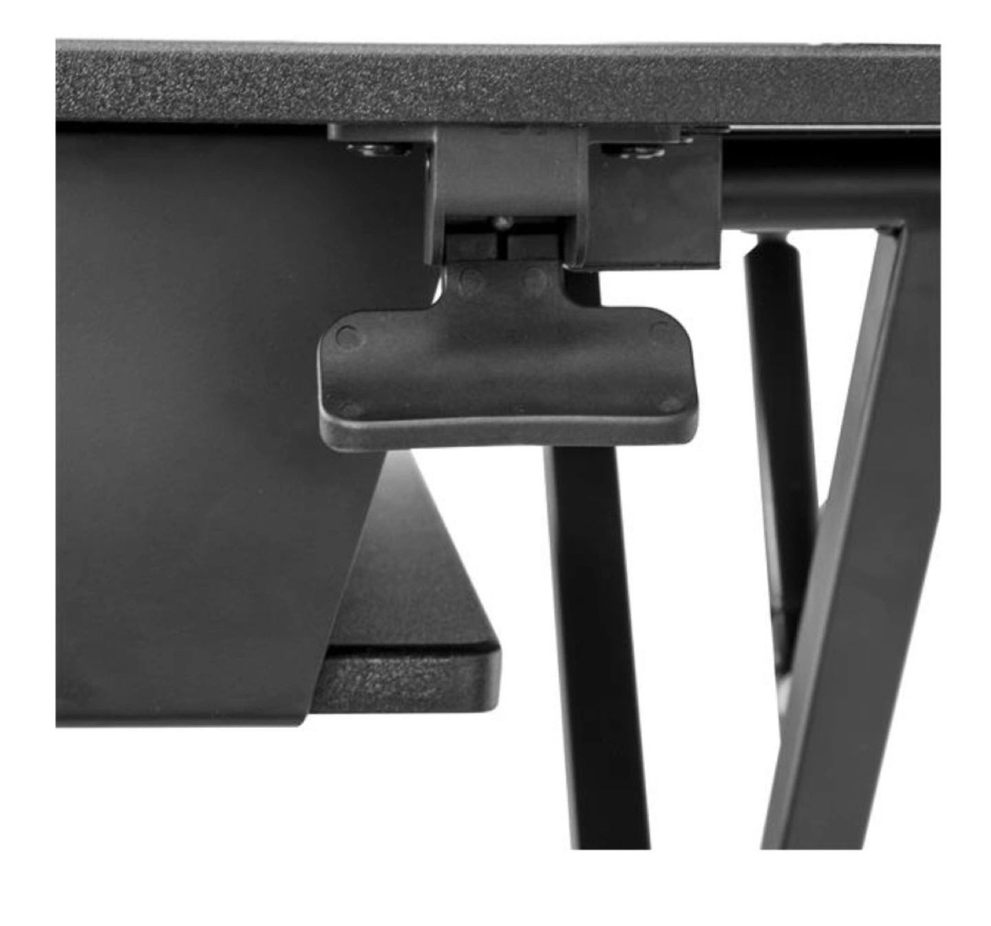 SIT STAND DESK CONVERTER: Equipped w/ a lever-controlled pneumatic spring and smooth adjustable height that can be locked at any position between 6.3" and 22" (160mm & 560mm) from the desk's surface.