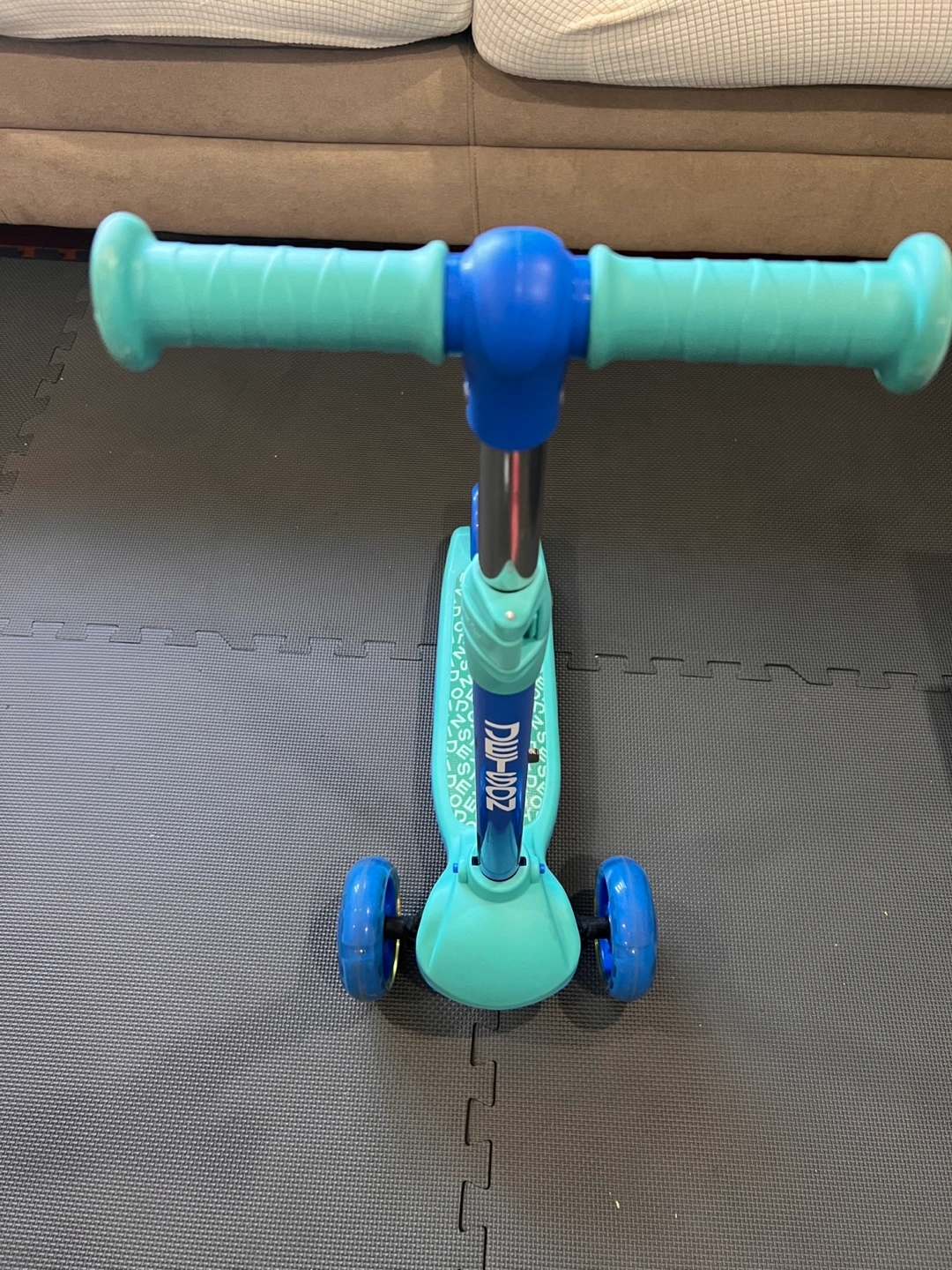 Blue and Teal Scooter with instructions. Our CJ kid rode it about a handful of times.