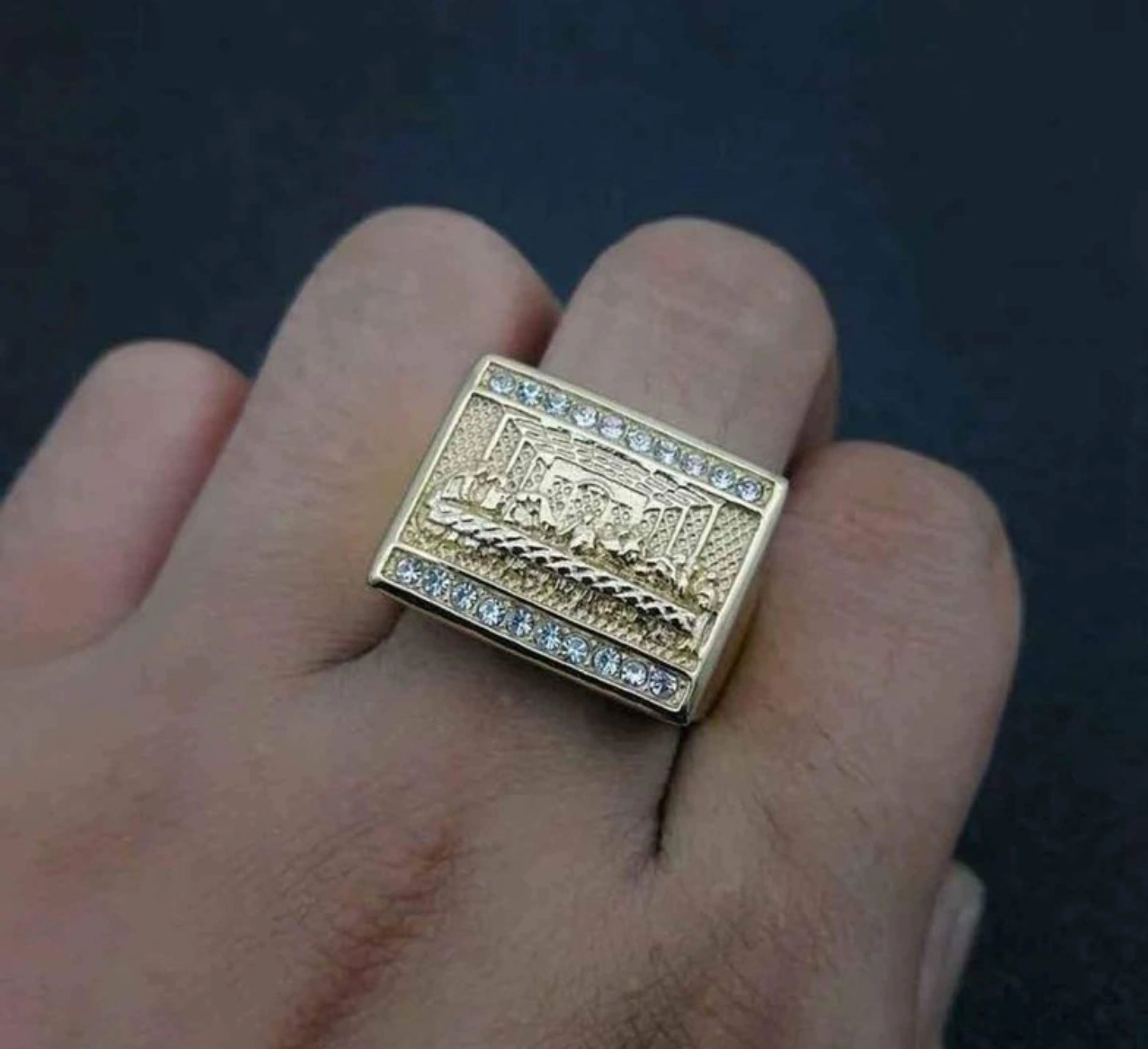 This is a gold crown ring. It is a great piece of jewelry that can be worn on a daily basis. It is a perfect gift for any occasion. And the last supper ring more on the religious side