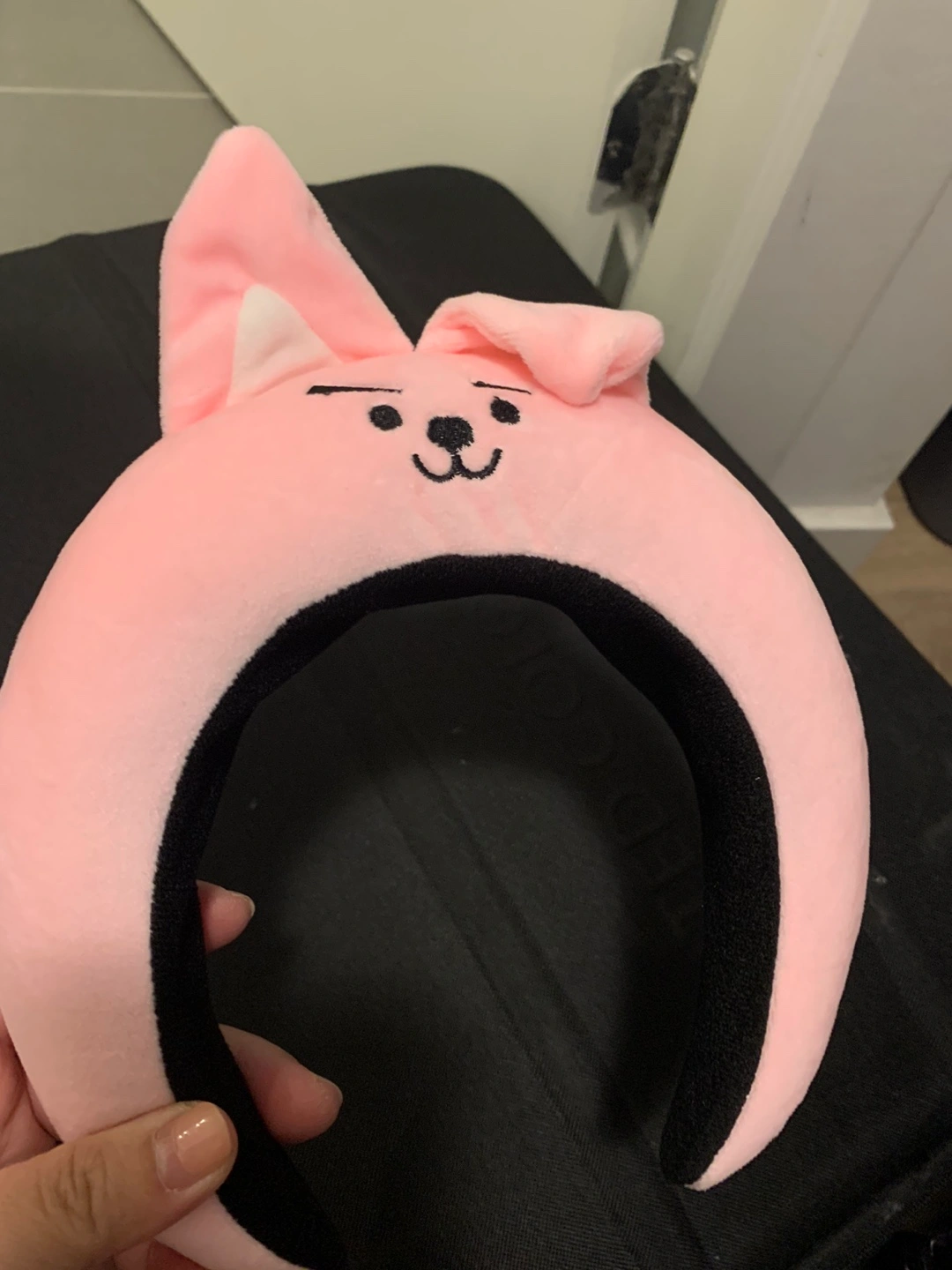 ✅ Korean BTS Jungkook - Cooky headband. It has black ears and a black nose.